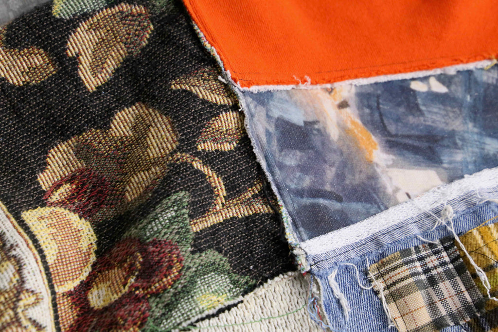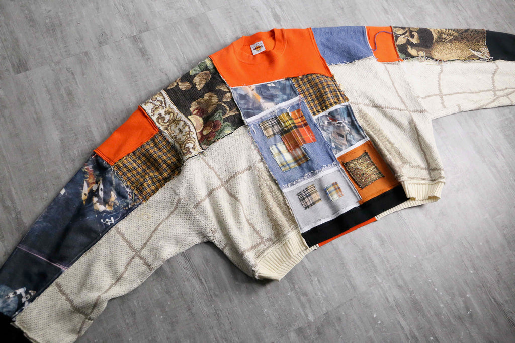 “Re:make” assembled patchwork design sweat