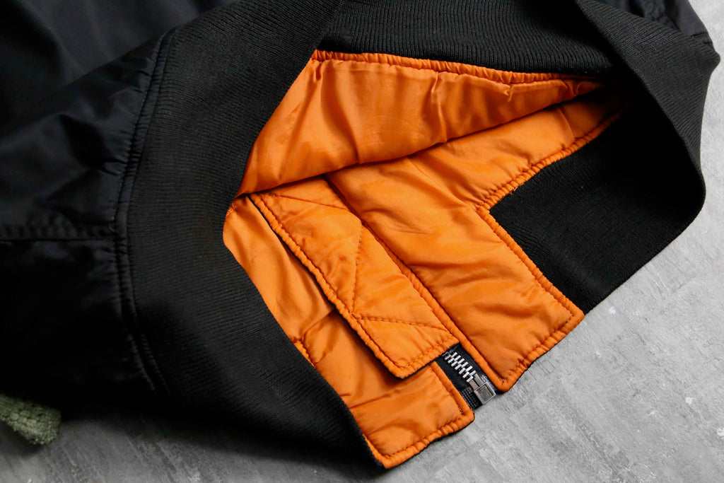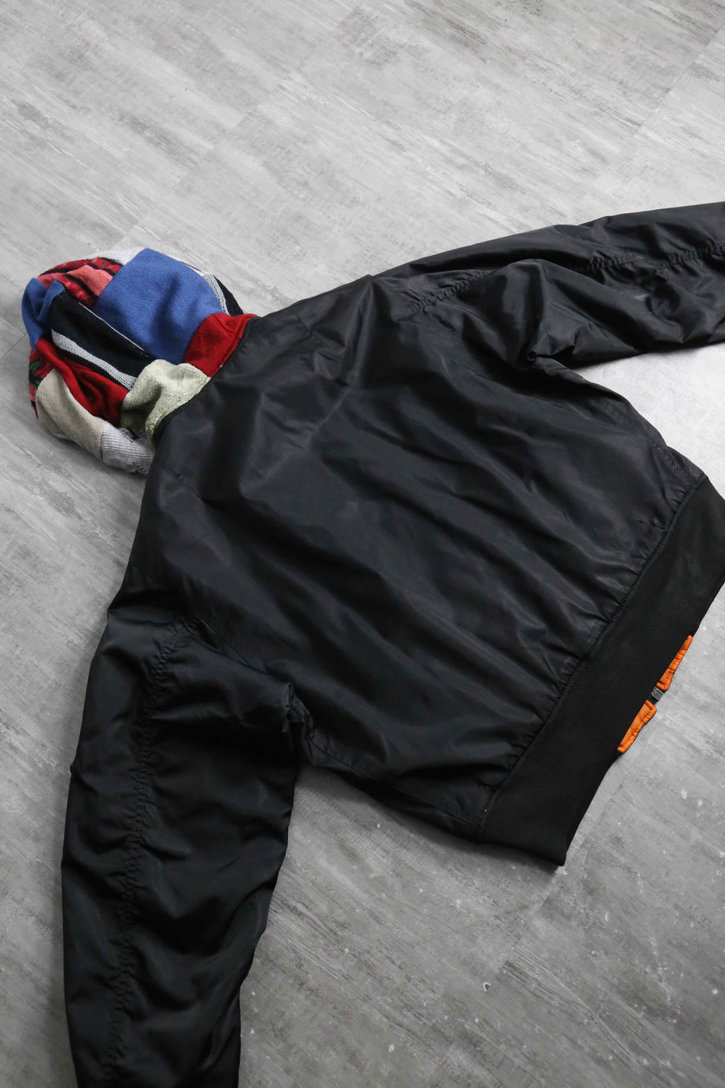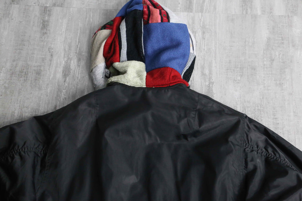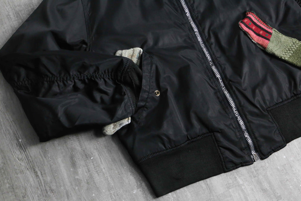 ヴィンテージMA-1に柄ニットから制作したフードとポケットマフラップを加え、アクセントの効いた可愛らしいジャケットがオンラインに入荷。
