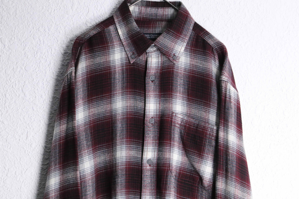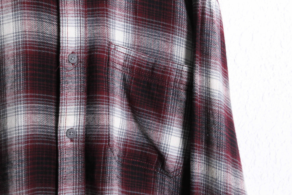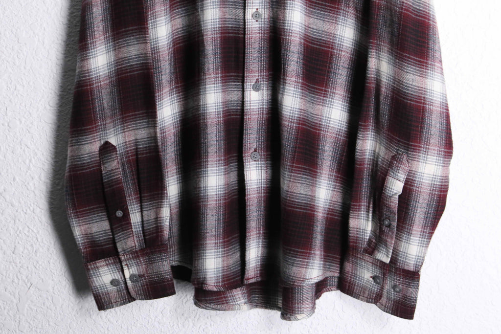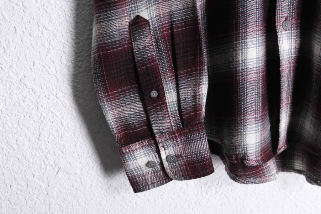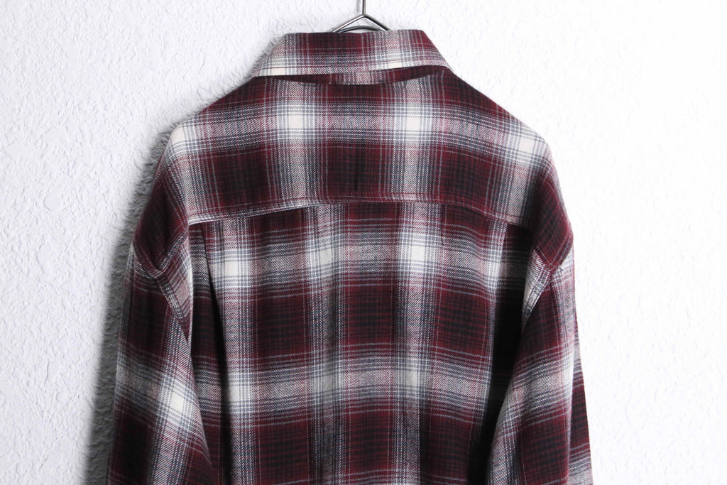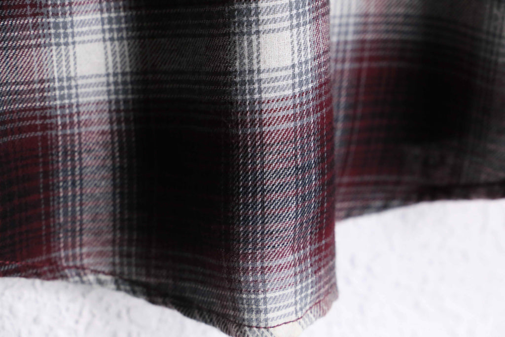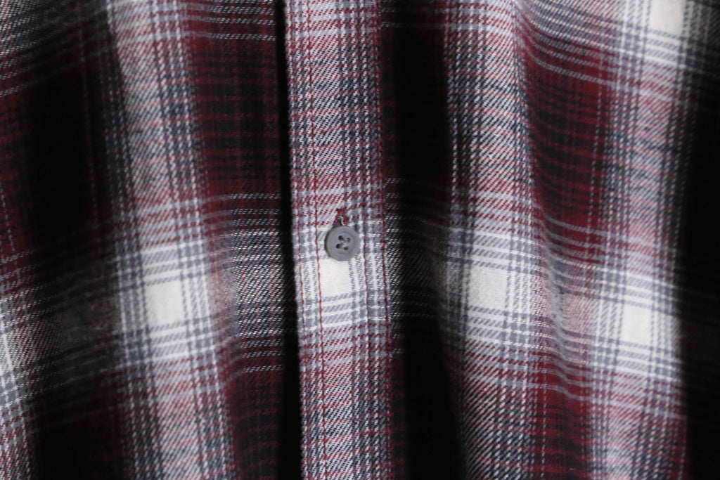 相性の良いレッド×グレーのグランジテイストなオンブレチェックシャツ。