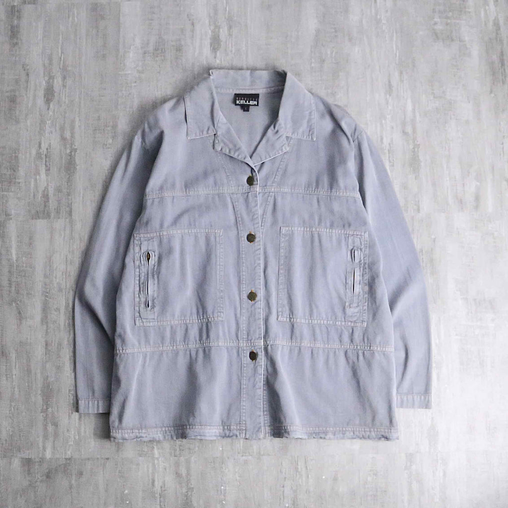 淡く霞んだグレーがなんともいい雰囲気を演出するシャツジャケット。