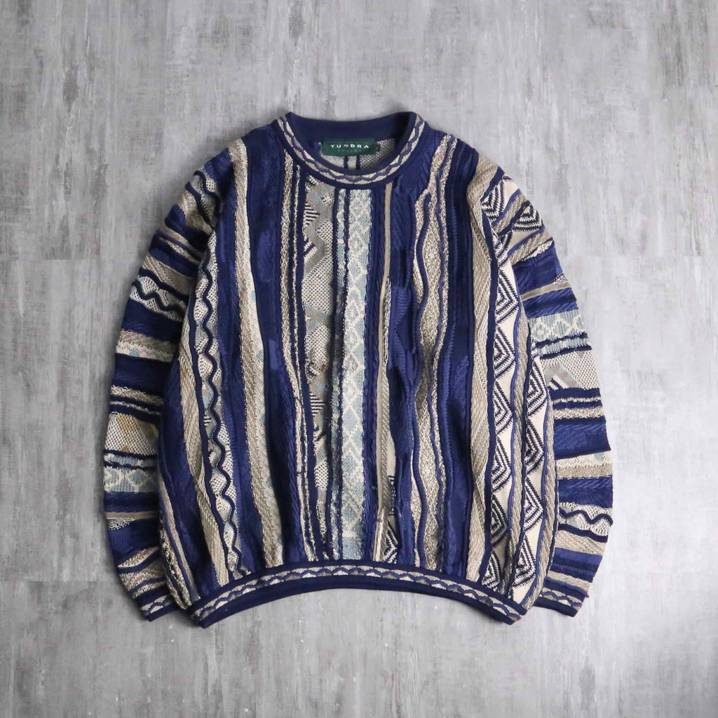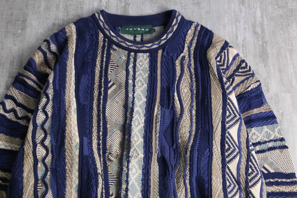 湖を連想させるような寒色をベースにされた美しいカラーリングの3Dニット。今回はニットの代表格であるカナダのブランド“TUNDRA”をご紹介。