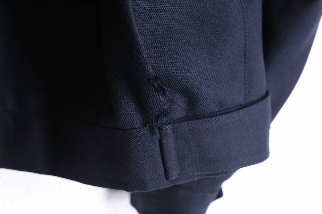 エポレットが搭載され、胸の両フラップはただの飾り。あくまでもデザインの為だけに製法しているのが個人的な魅力ポイントです。サイジングは間違いのない身幅、アーム太めの良シルエット。ただのブルゾンじゃつまらない。そんな方に着て欲しい1着です。