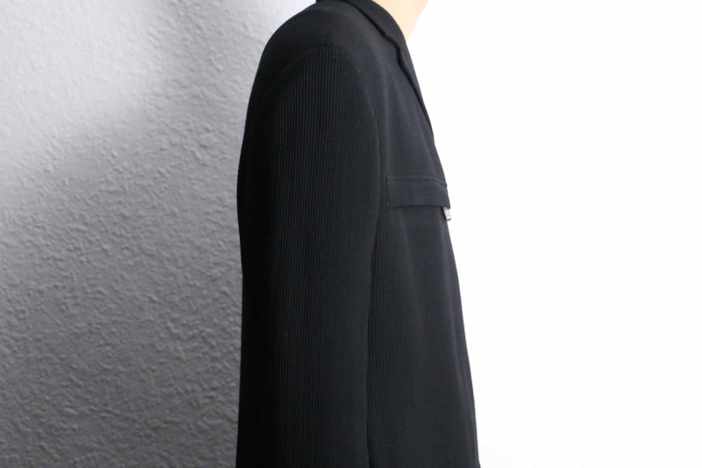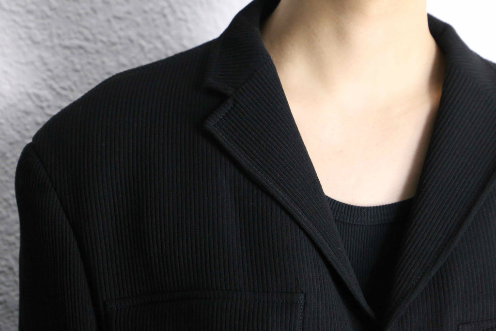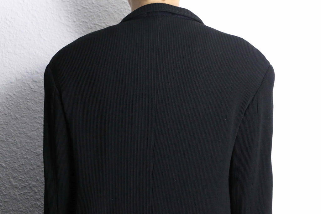 プリーツ加工されたデザインにシックなブラックが良く似合うテーラードジャケット。