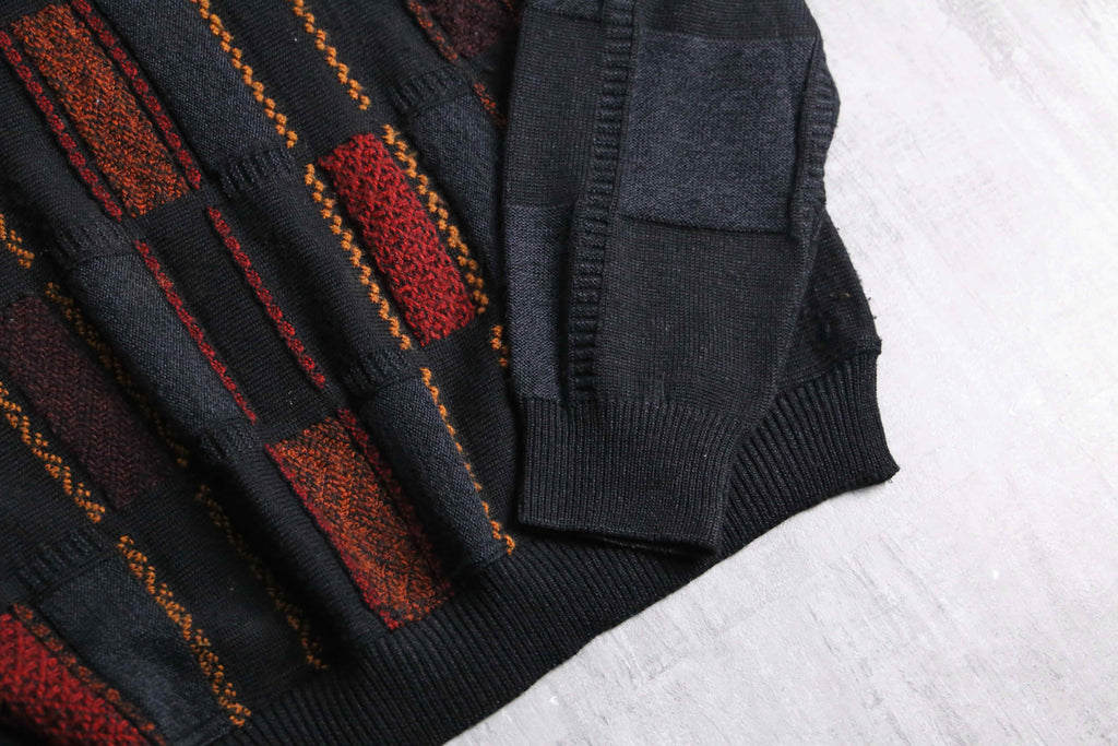ブラック、レッド、オレンジの好配色。 ブラックボディのおかげか派手過ぎず、良いバランスで出来たニット。
