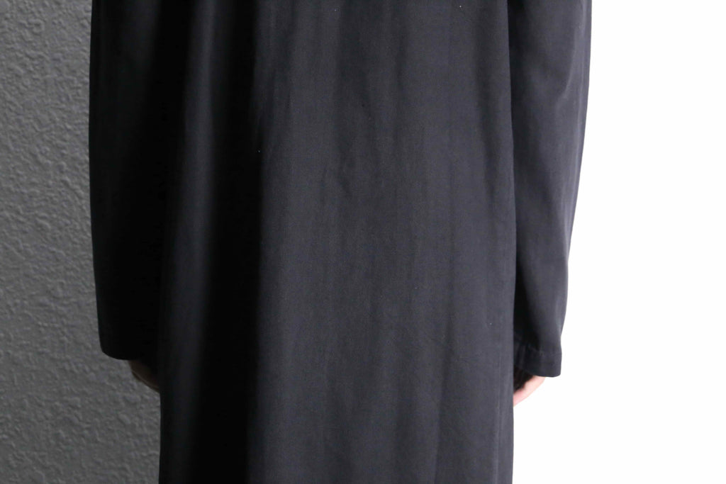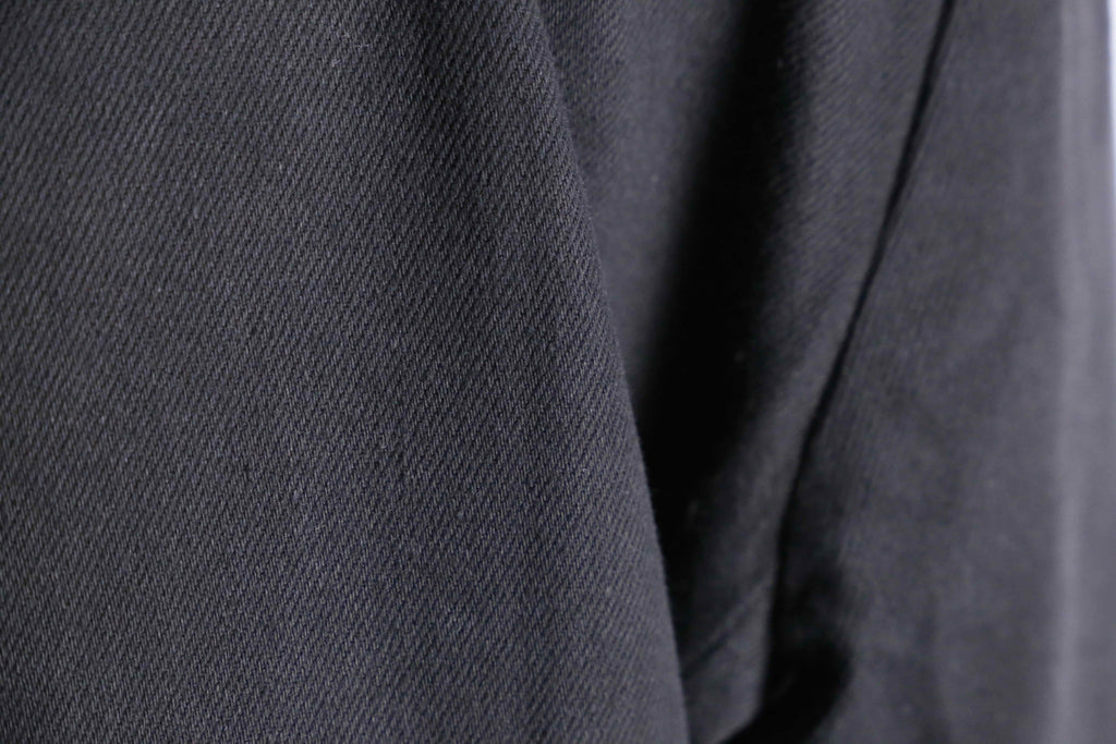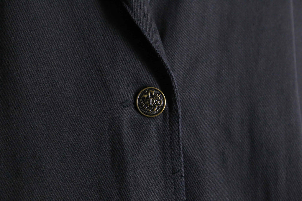 張りのあるコットンは筒状の立体的なシルエットを作り出し、美しいラインを形成しています。ボタンや付属のベルトバックルの真鍮で統一されたディテールも、高級感を演出し、一段と洗練された印象。サイジングも着込むことの出来る程良いサイズ感です。