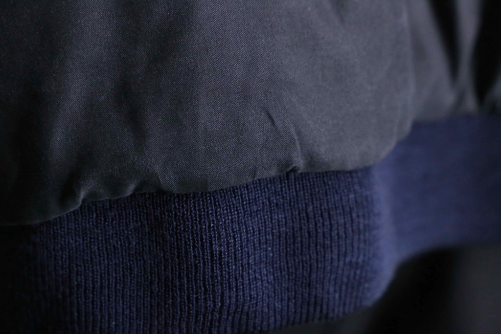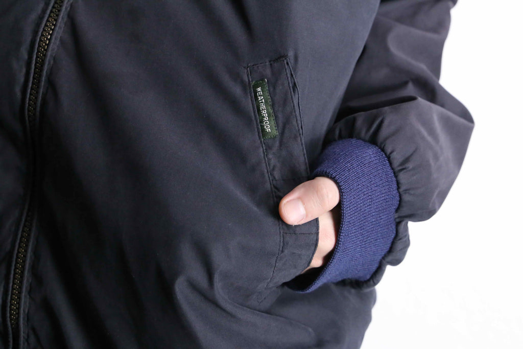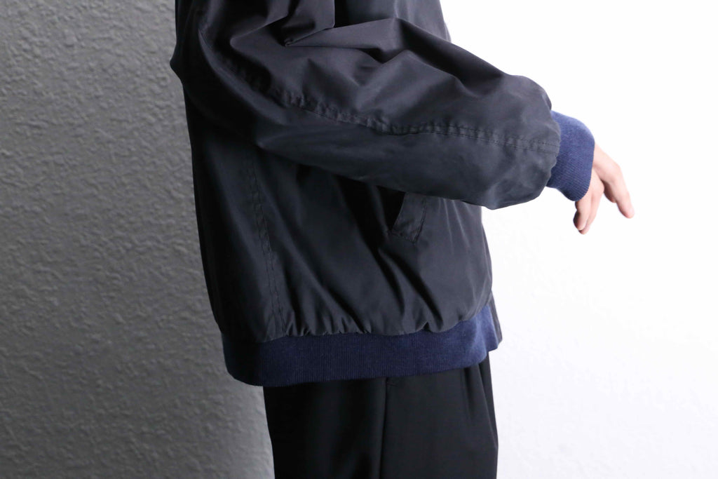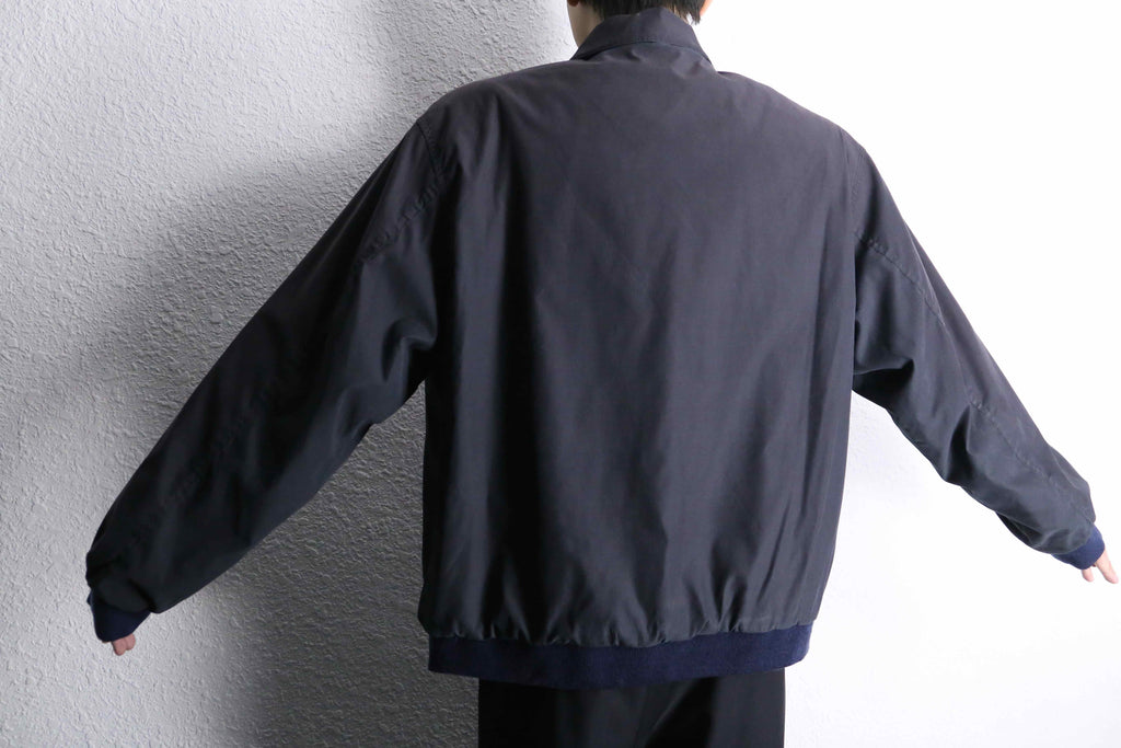 真っ黒ボディに映える濃紺のスウェットリブが古着らしい魅力のあるナイロンジャケット。