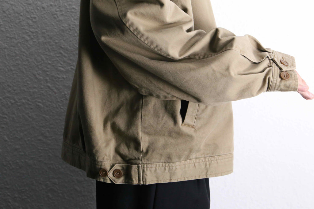 今回はシンプルなスポジャケタイプのコットンジャケット。サイズはXLサイズとゆったりと羽織れるリアルクローズな1着。肉厚な生地に身幅の大きいシルエットは、現代のスタイリングとも相性が良く、古着らしいスタイリングから現行のアイテムと合わせた流行のスタイリングまで扱えるジャケットだと思います。