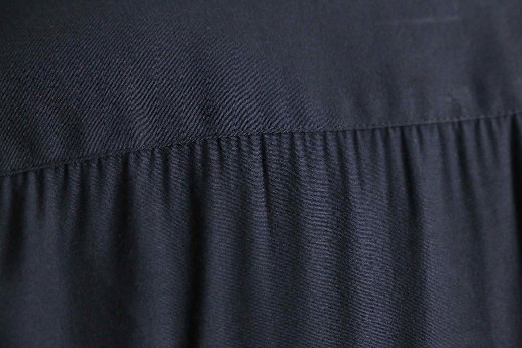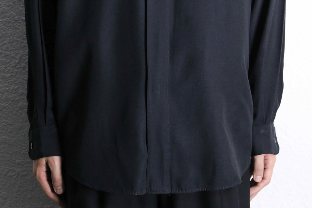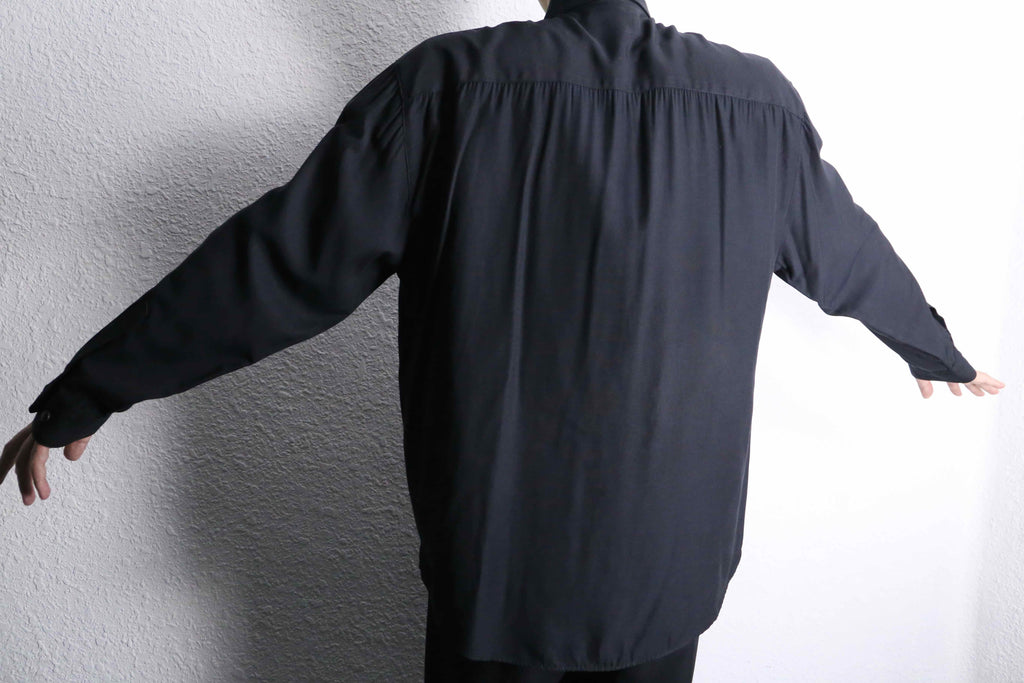 非常に上品なレーヨンの質感にうっとりしてしまう綺麗な黒シャツ。