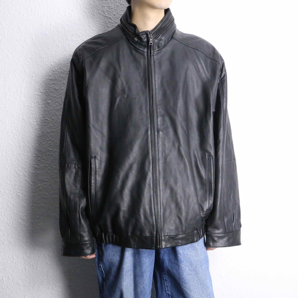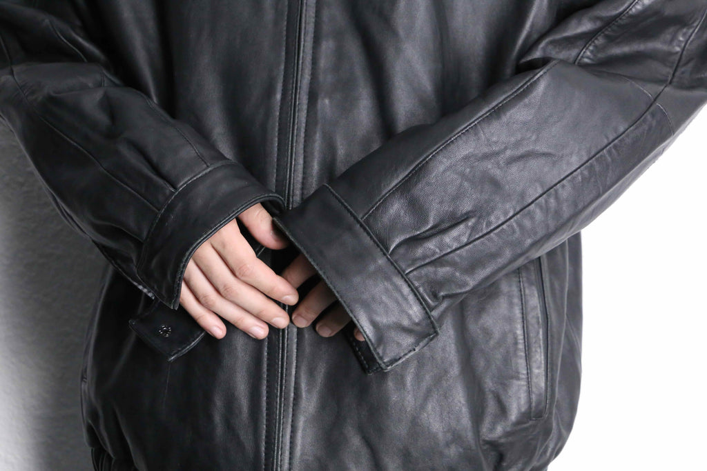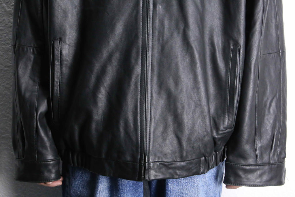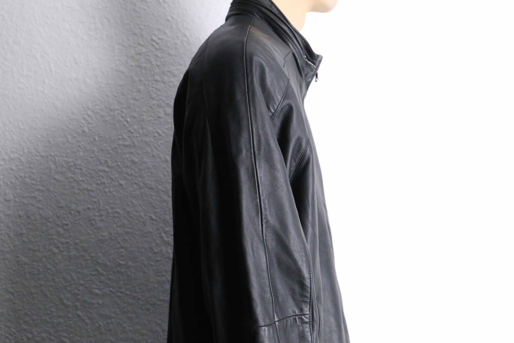 シンプルなブラックで統一され、洗練された印象。高めのネックもエレガントな雰囲気が漂っています。そして、アメリカらしい合理的なシンプルなデザイン。ブラックレザーの中でも扱いやすく、リアルクローズな1着ですね。