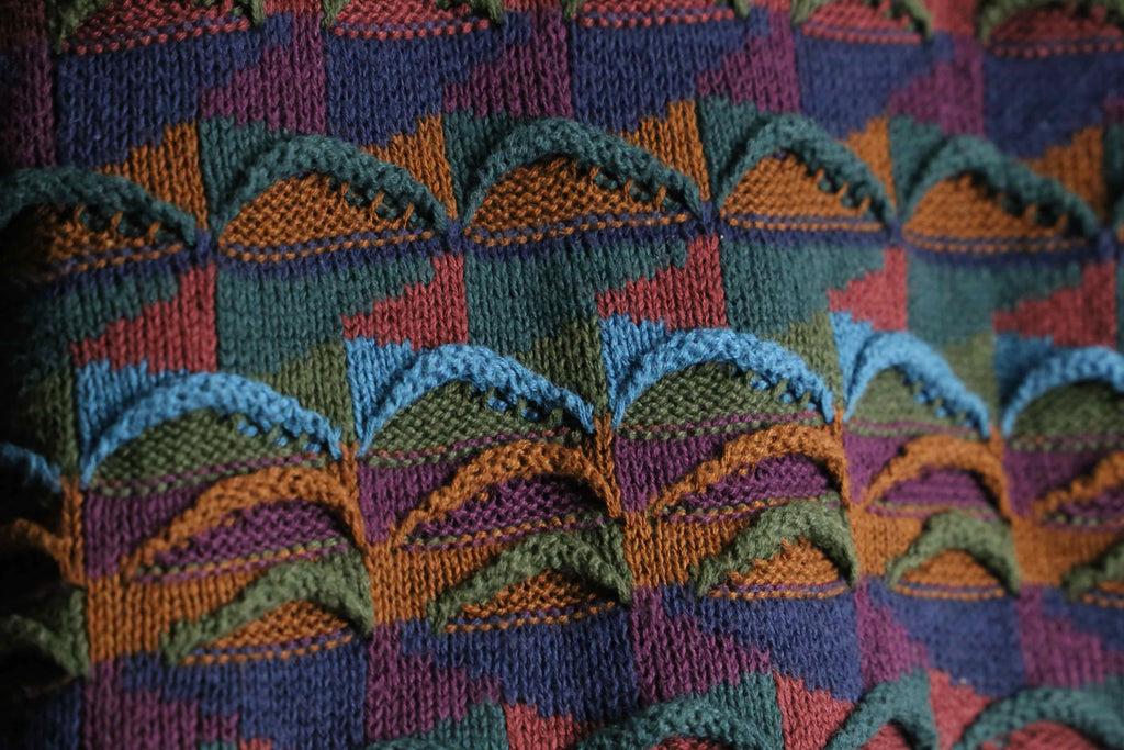 ダークトーンを基調としたレトロな色味。多彩な糸で紡がれたデザインや技術に惚れ惚れしてしまいます。リブの効いた着丈が肉厚な生地を溜め、丸みを帯びた美しいシルエットになるのもポイントです。