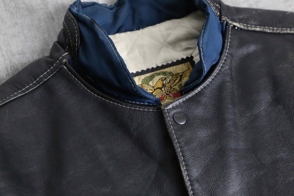 nylon × leather switch zip blouson