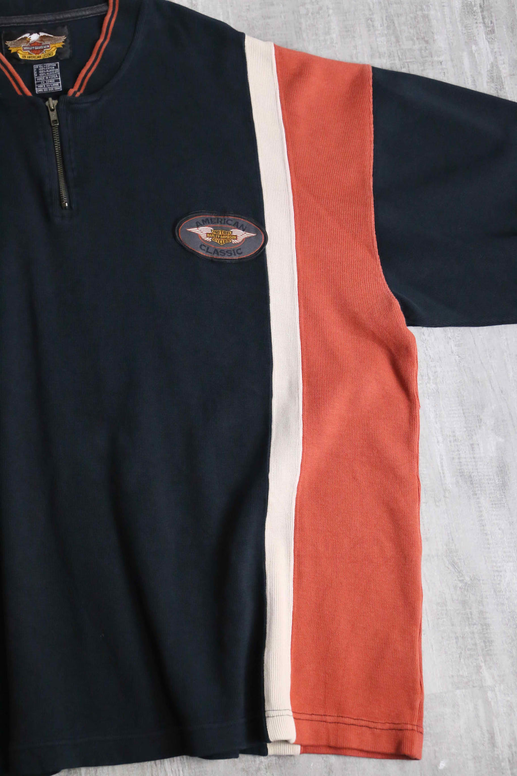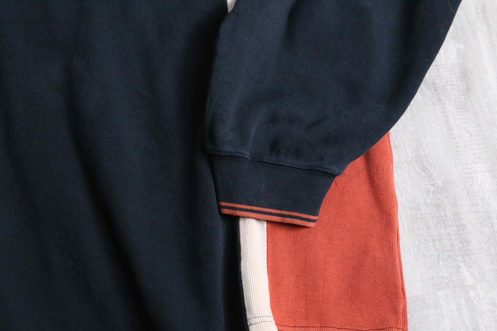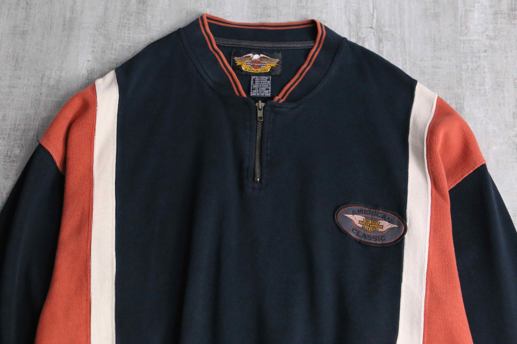 今回はバイカーらしい無骨さとデザインを持ち合わせたニットをご紹介。サイジングはゆったりとしており、身幅にはゆとりのある仕様。左胸には刺繍のロゴデザイン。若干のスポーティーさを感じつつ、アメリカンの渋さも感じるニットになっています。是非。