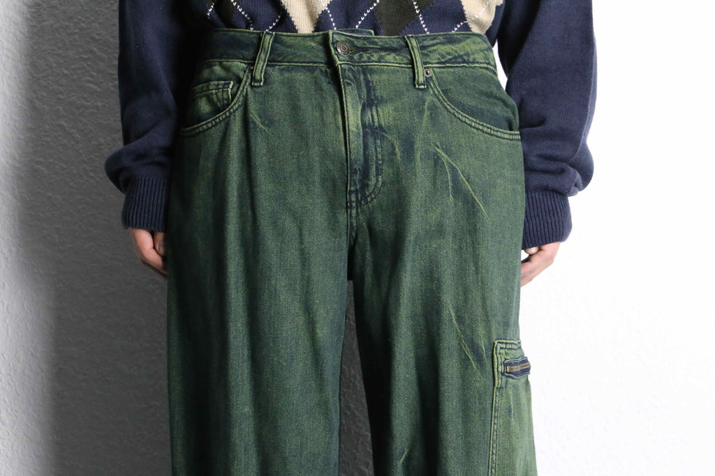スタイリングのアクセントとして優秀なサイドポケットに加え、長めのコードがよりエッジの効いたビジュアルに。リヨセルのトロみのついた生地もワイドシルエットを綺麗に見せてくれています。一味違うカーゴパンツとして見ていただきたい逸品です。