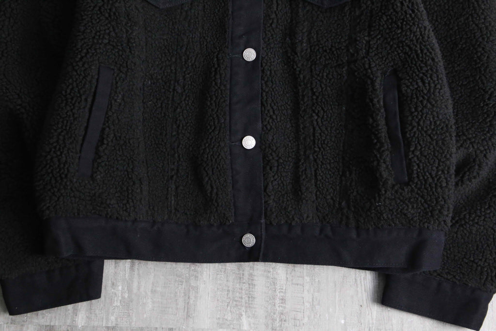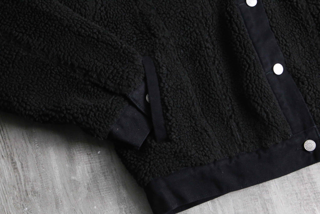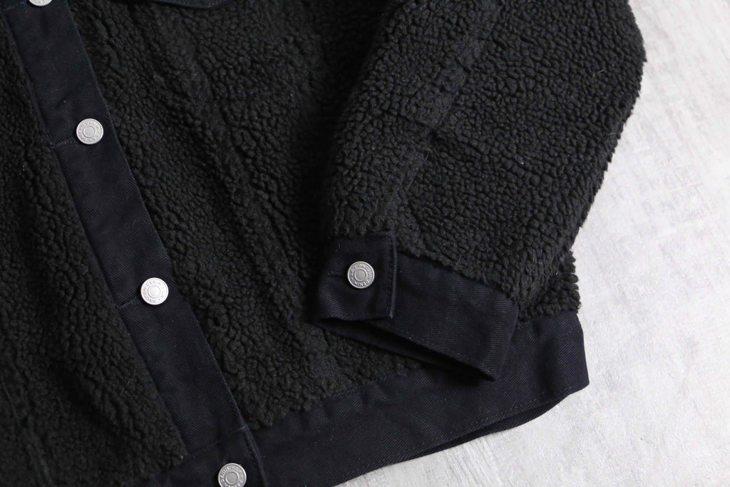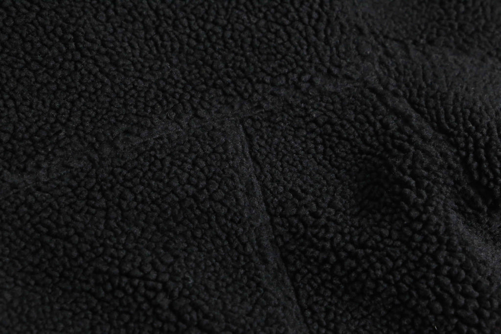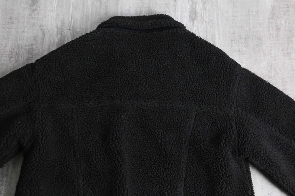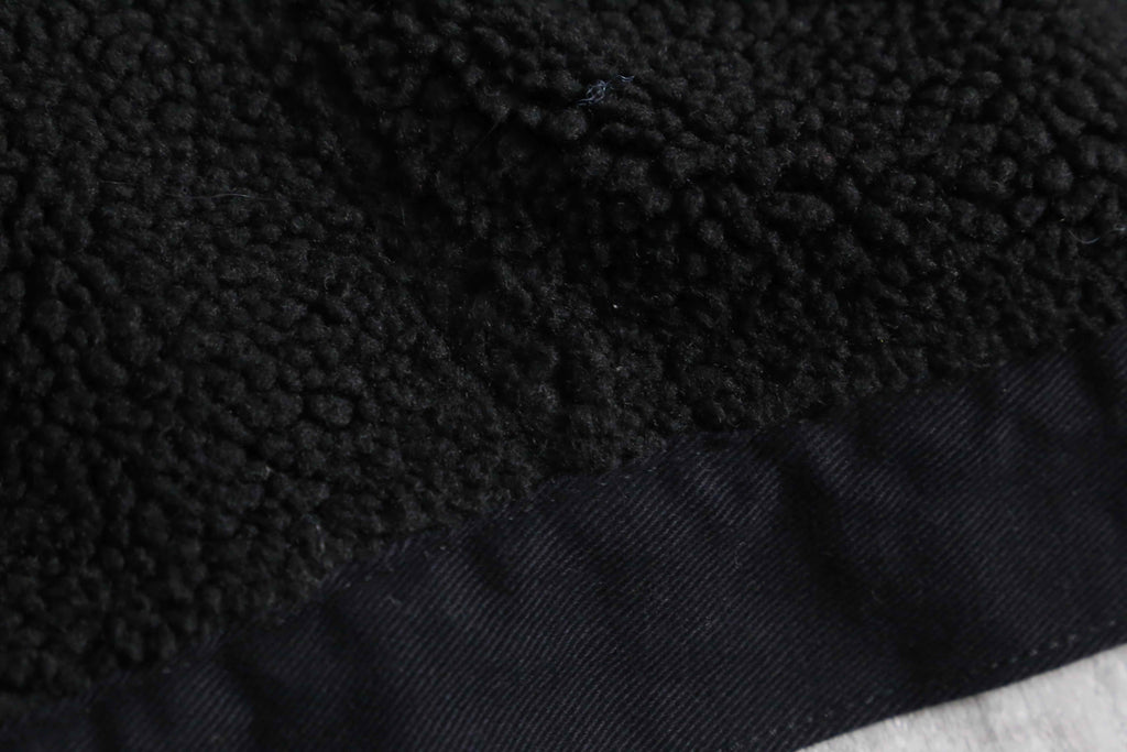 ルーズなフリースアイテムが散見されるなか、着丈の短いトラッカー型を採用したルックスは中々面白味のある逸品です。細かなディテールでもポケットや裾、フラップがコーデュロイに切替られているなどセンスを感じる1着。裏地はキルティング加工されており、防寒性も完備されたジャケットです。