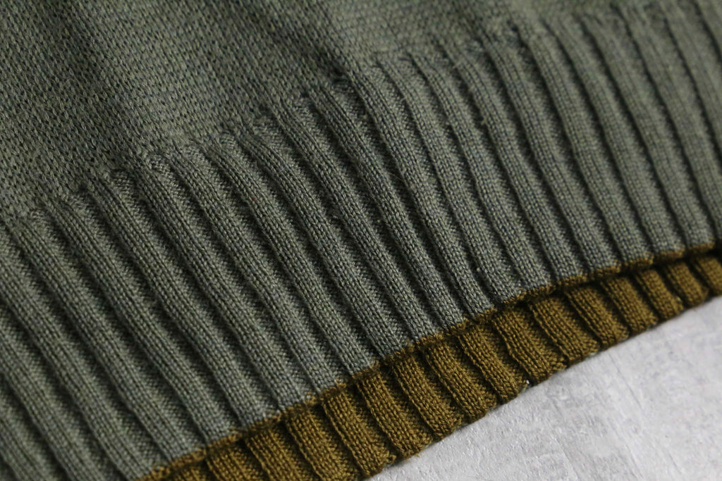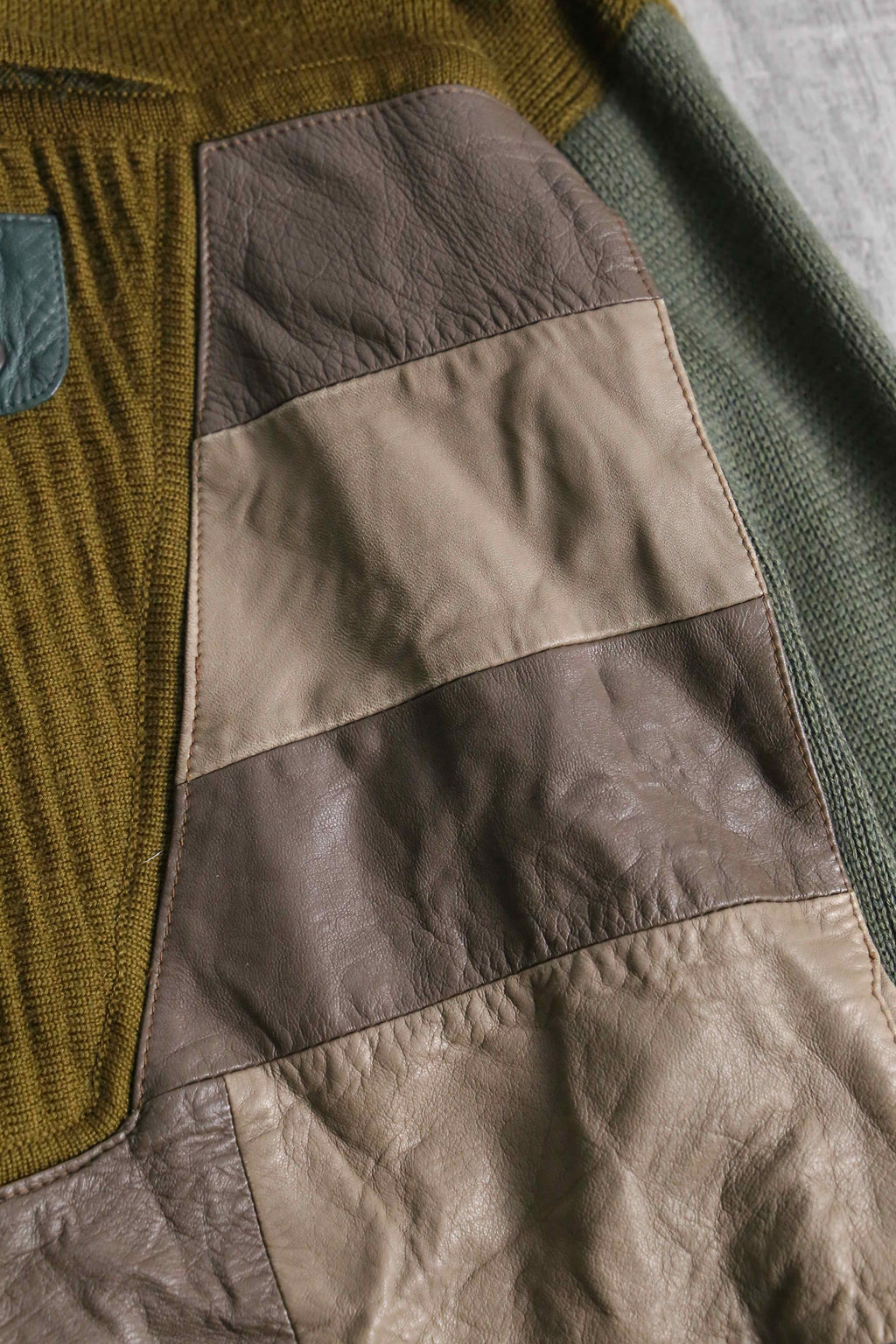 淡い配色で贅沢にレザーを切り替えたフロントデザイン。レザー切り替え系アイテムの中でもより際立った独特な雰囲気が魅力的です。