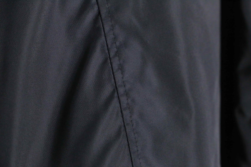 着丈の短さはさることながら、身幅は大きく、アームも太めという理想的なシルエット。ナイロン素材100%というのも優秀で、軽く熱がこもり安い性質を持った素材なのでこの時期にピッタリなアイテムですね。バギーデニムやワイドスラックス等とも相性が良いので、ヘヴィユース出来るアウターだと思います。