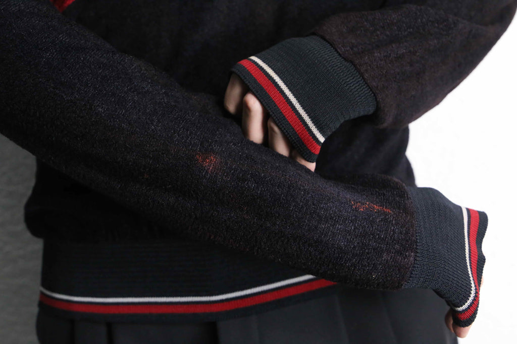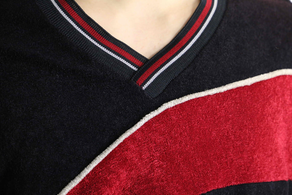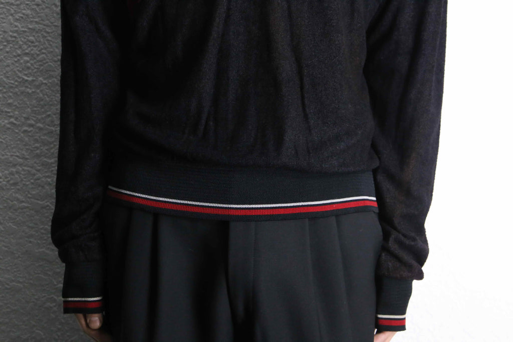 black×red slash front design knit