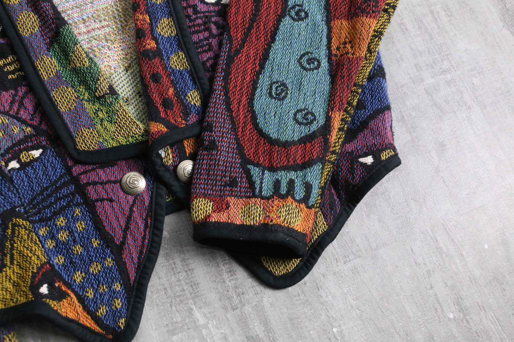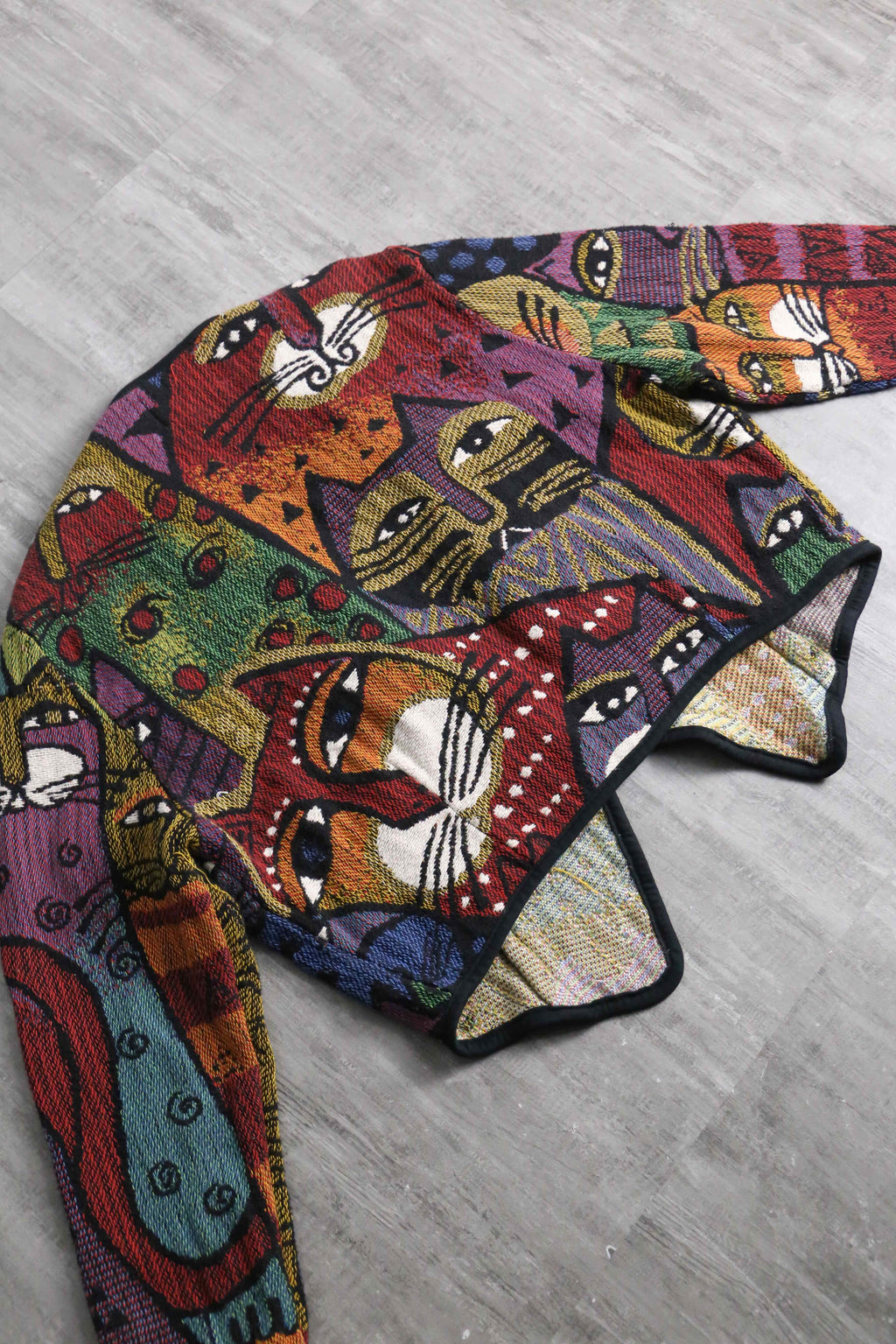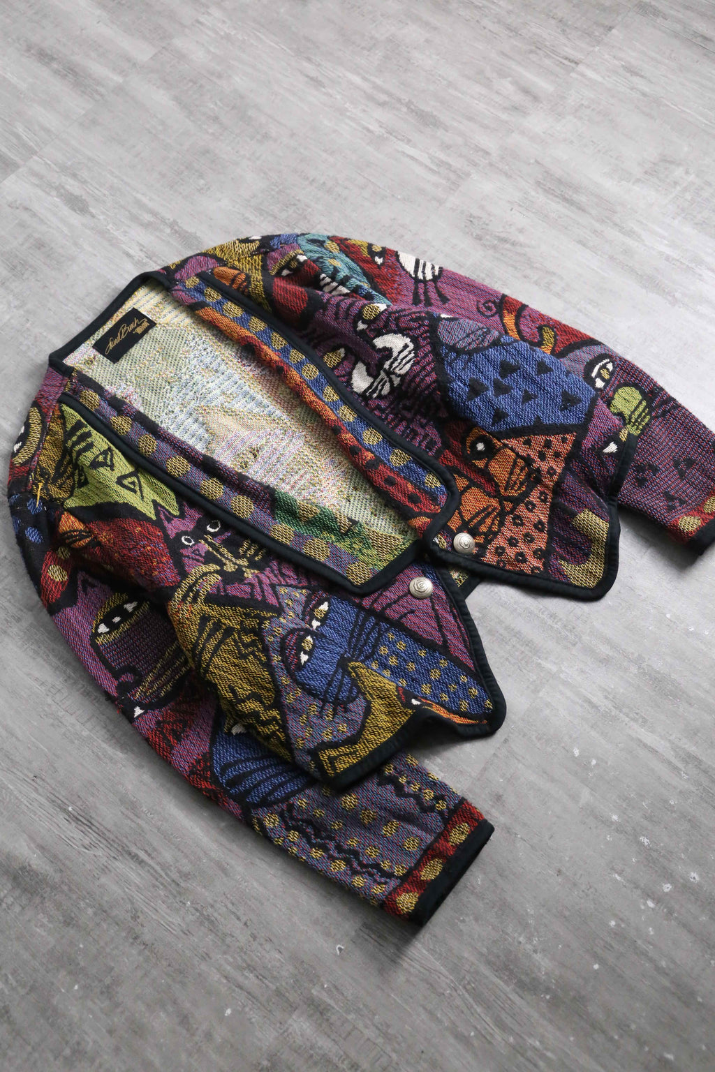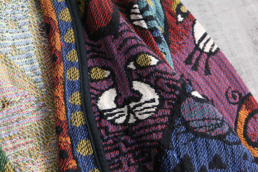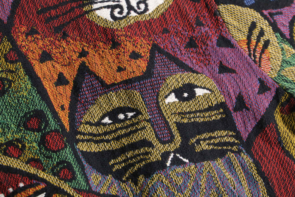 ゴブラン織とエスニックに描かれた猫のアートが非常にファッション性の高いデザイン。