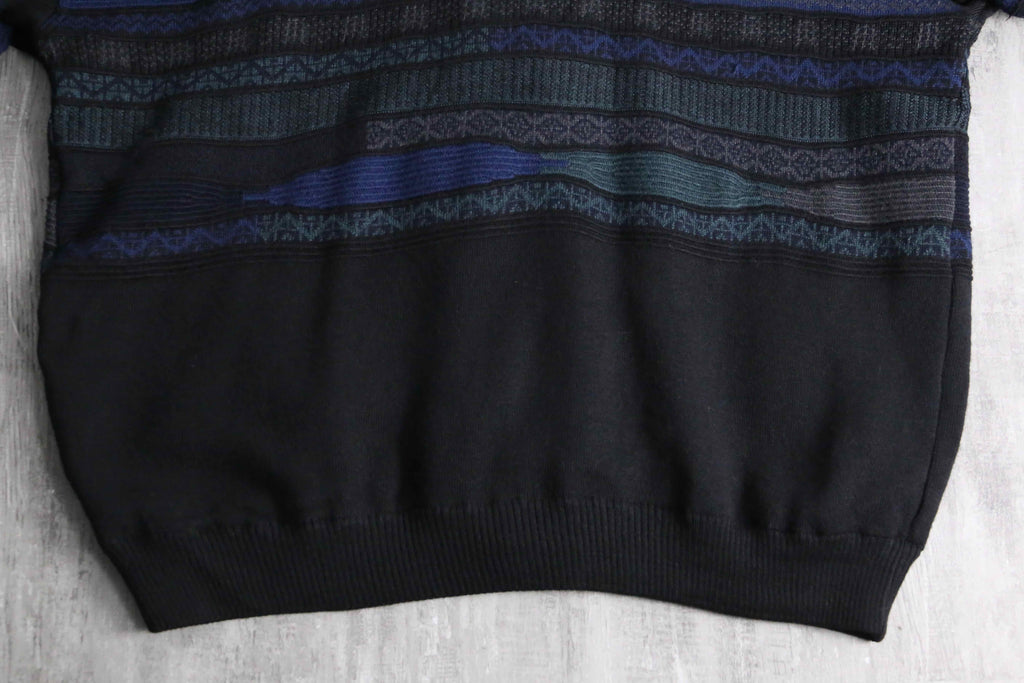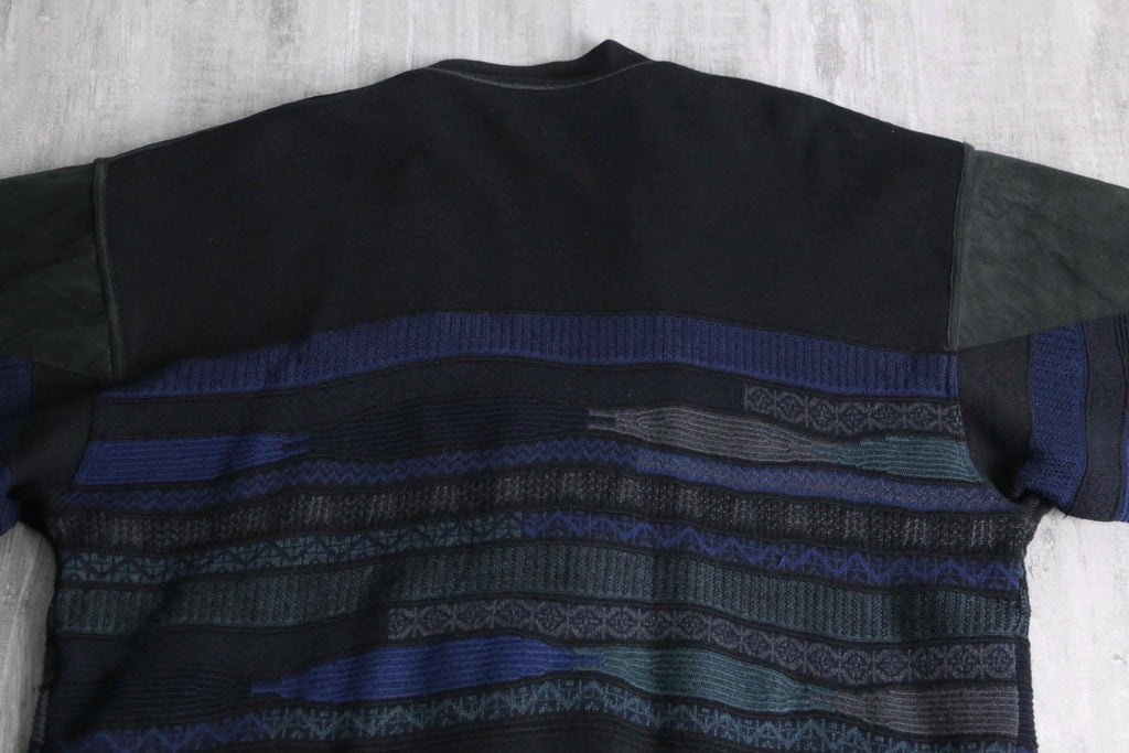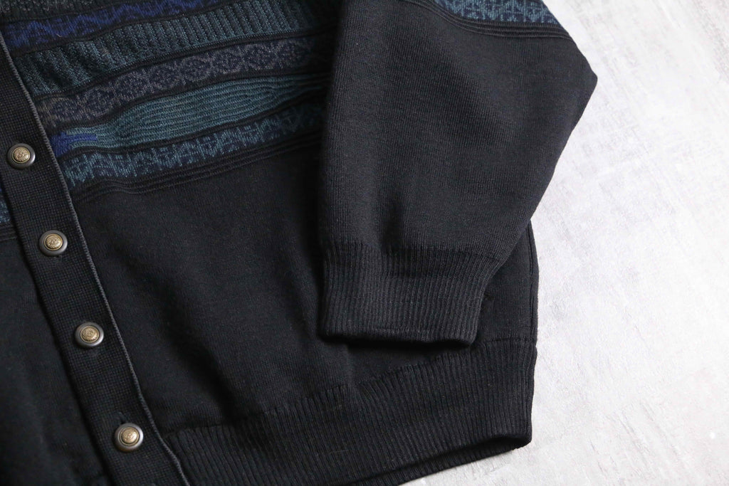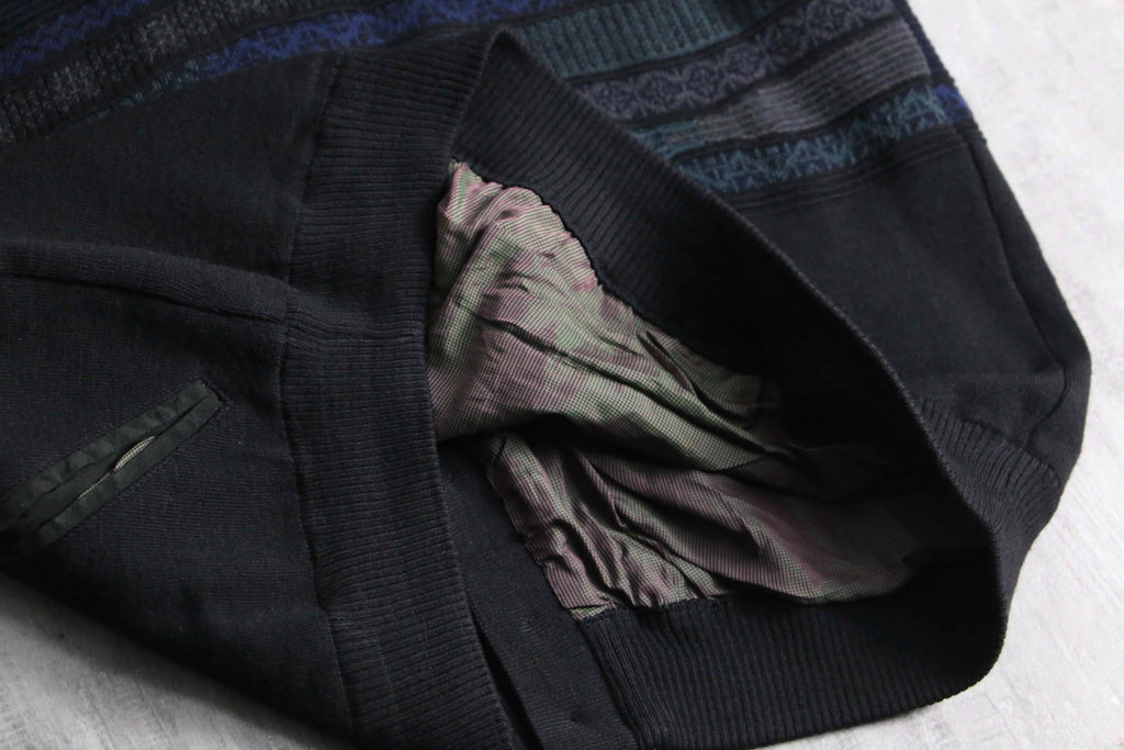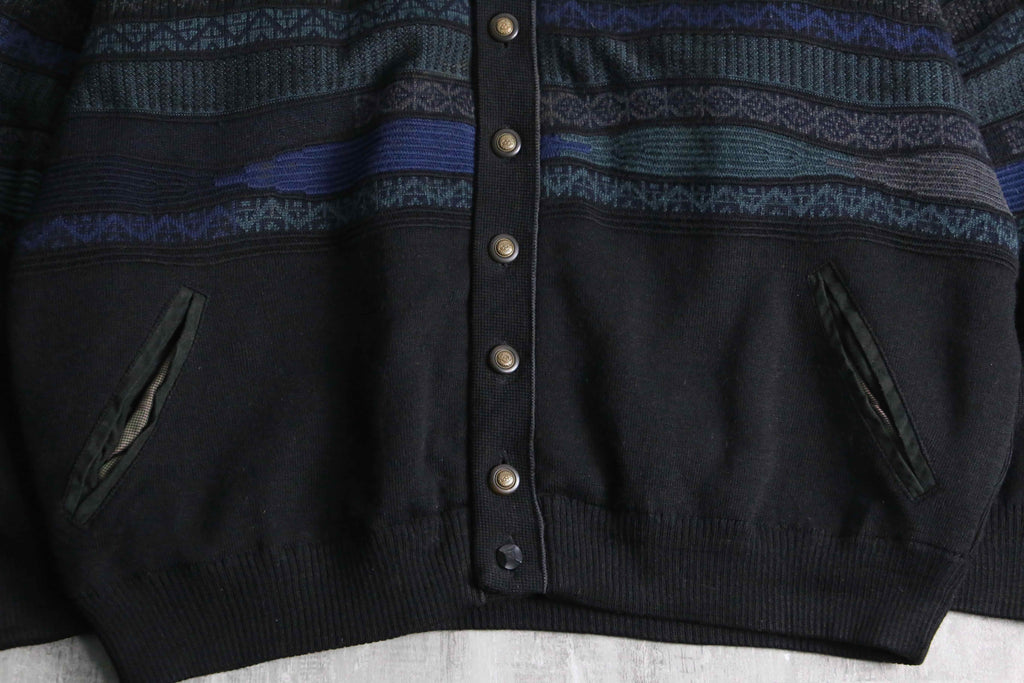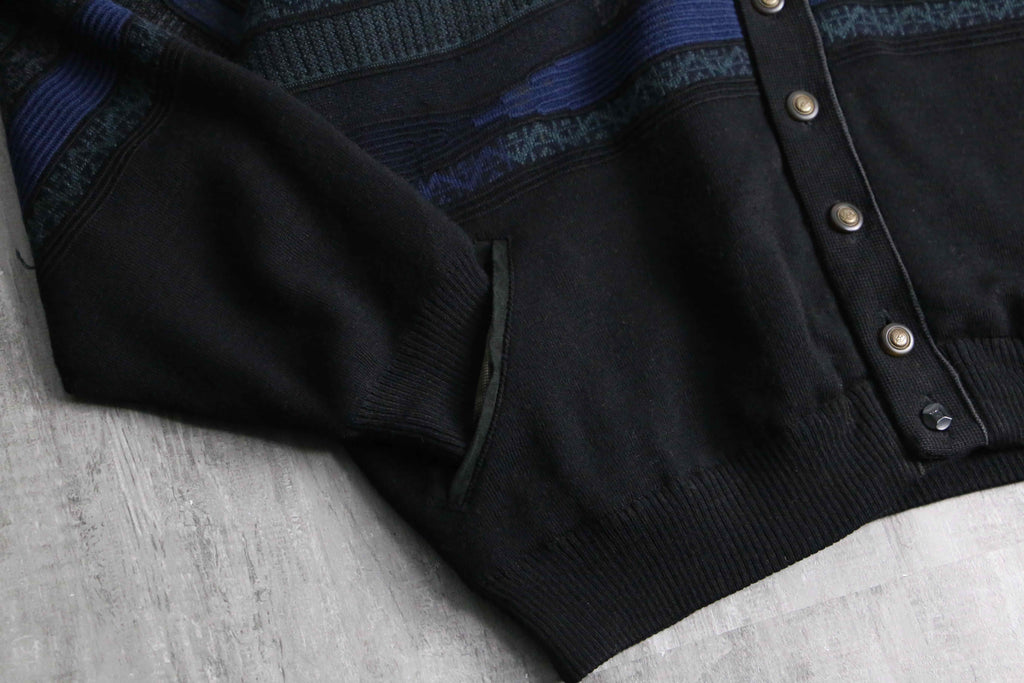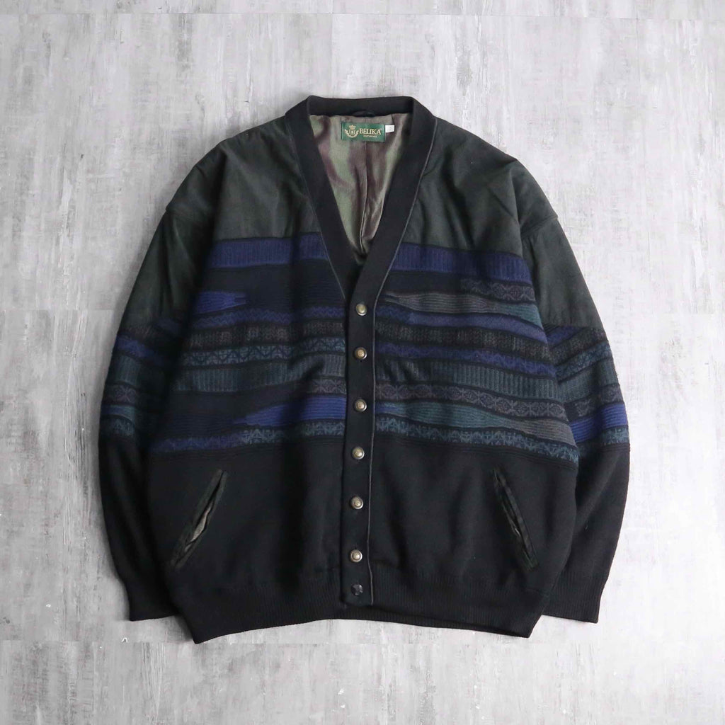 エスニック調なデザインに3Dの立体感を合わせるというのがセンスを感じられます。身幅は広めなので、インナーにシャツ等でレイヤードを楽しんで欲しい1着です。春先や秋口なんかでも活躍してくれるカーディガンですね。