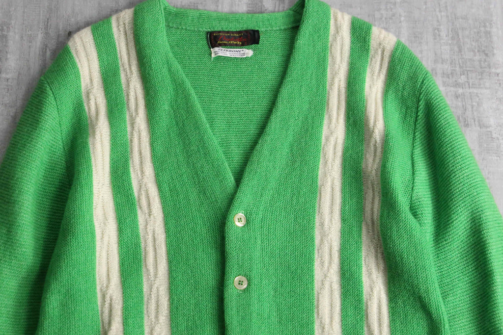 1960〜70's green × white acryl cardigan