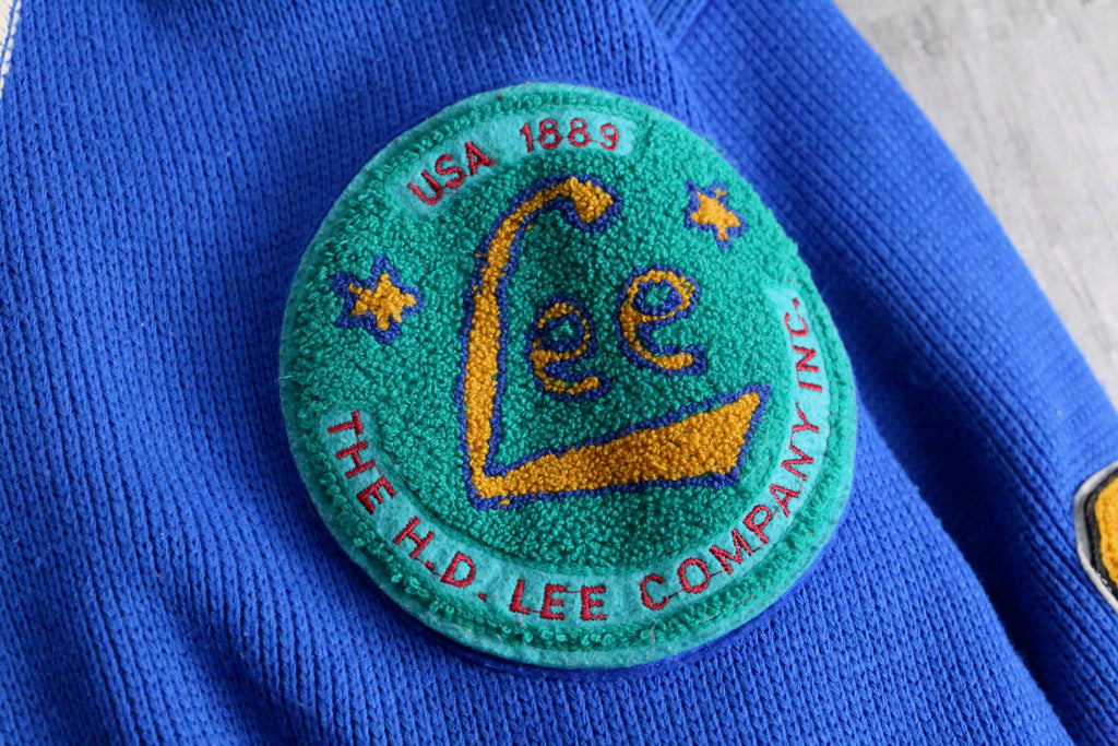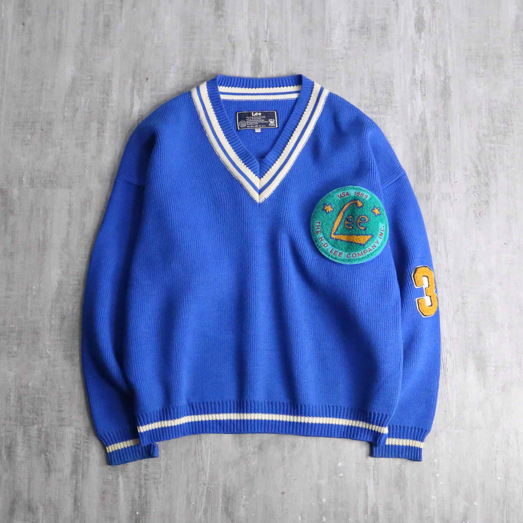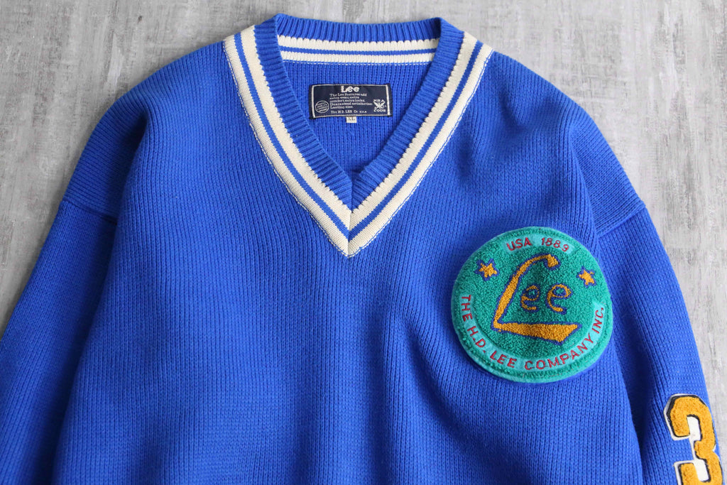 1990’s~00’s “Lee”vivid blue lettered V neck knit