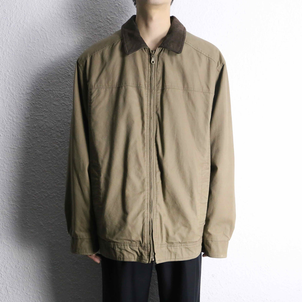 “St.JOHN’S BAY” leather collar cotton zip jacket