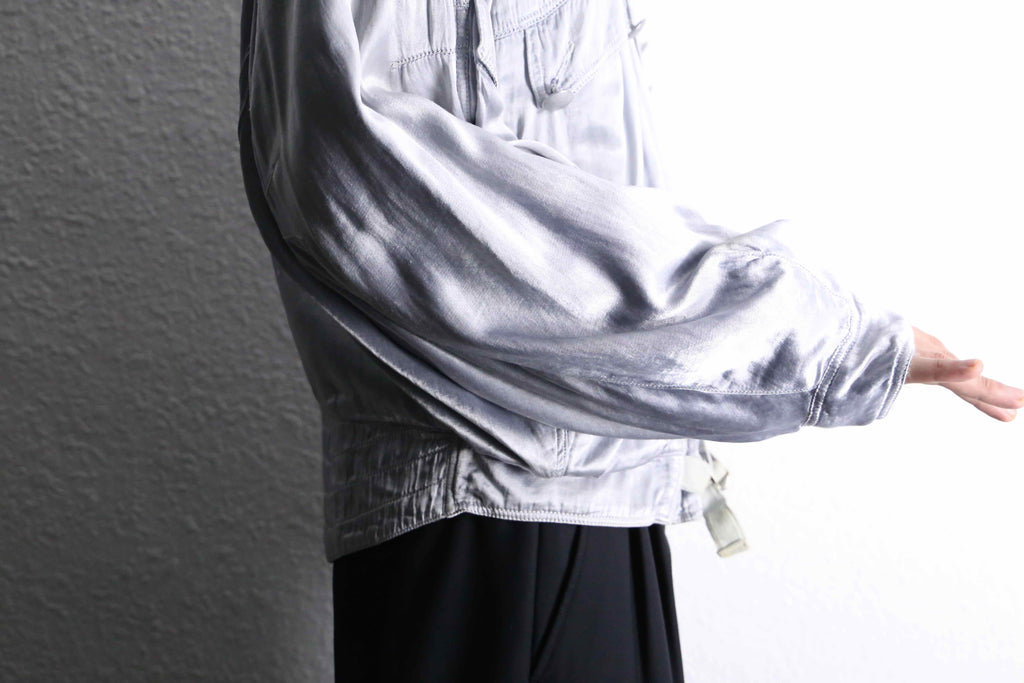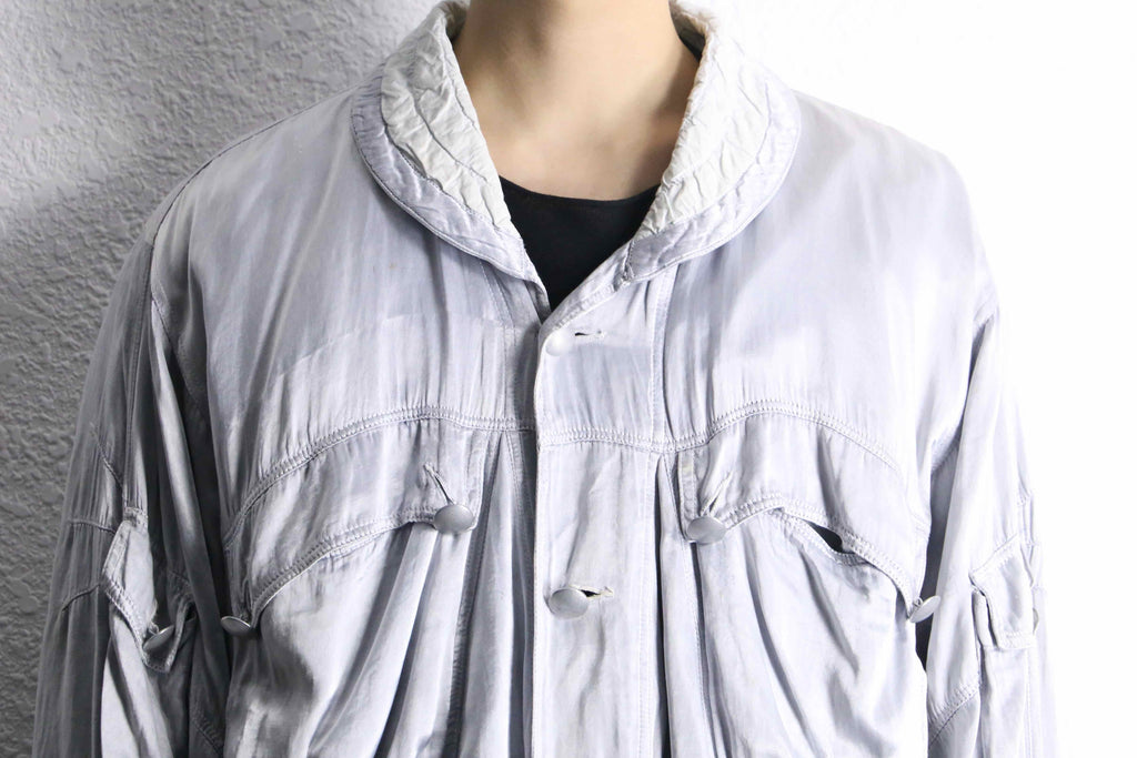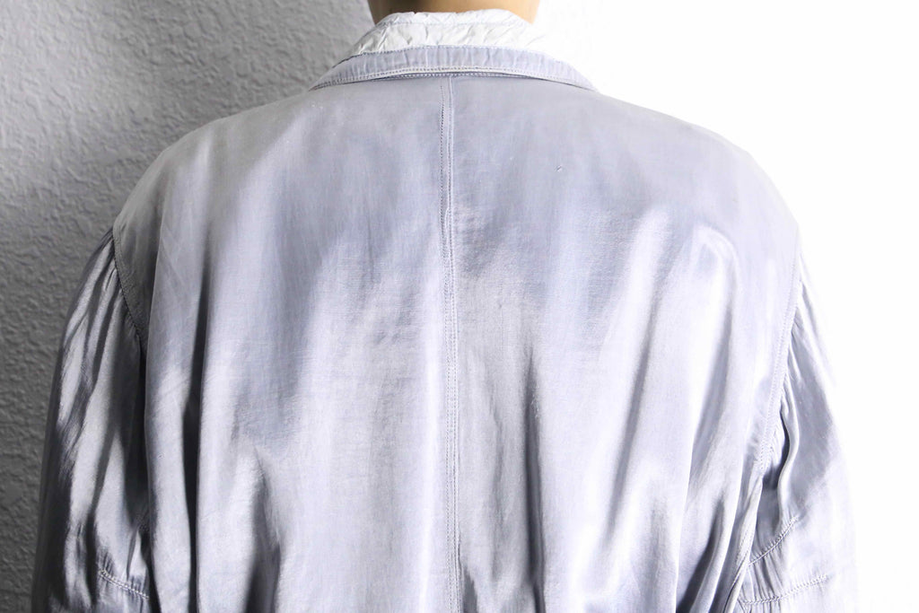 光沢のあるギラついたビジュアルはまさに主役級。丸みを帯びたシルエットは可愛らしく、ショールカラーと合わせてるのも面白いです。各所のディテールのギミック間も素晴らしく、アジャスターやポケットなど個性を感じるアイテムです。
