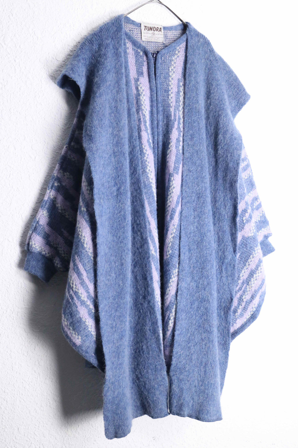 80’s “TUNDRA” patterned muffler docking knit poncho