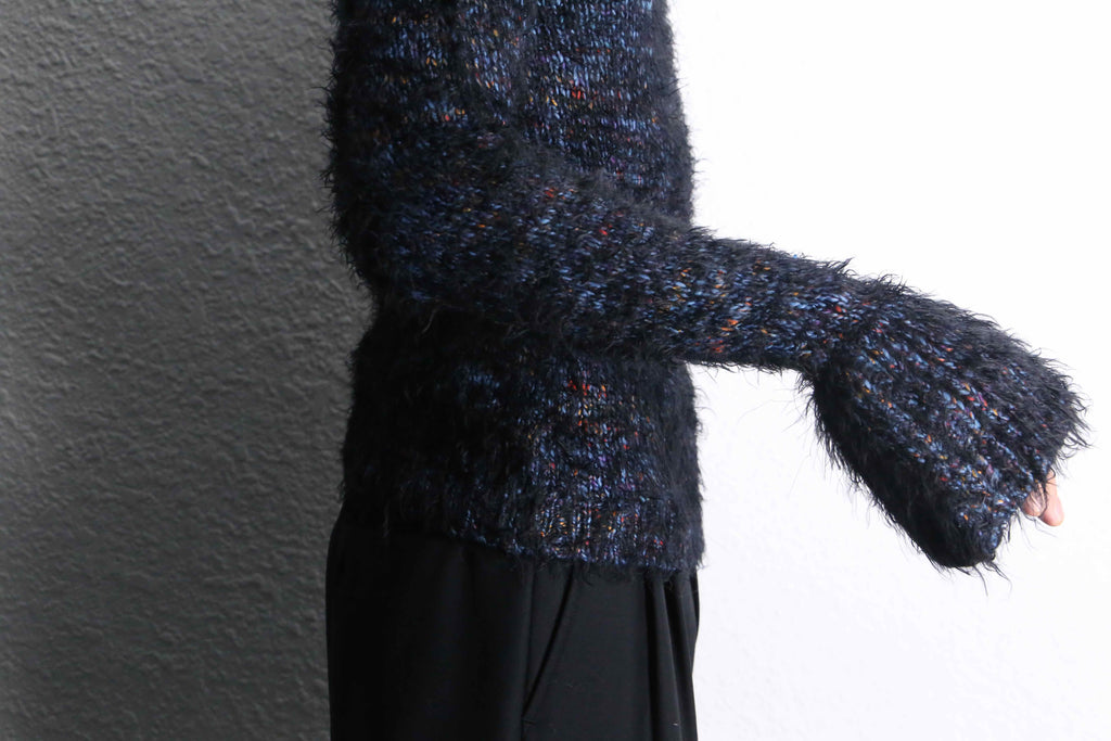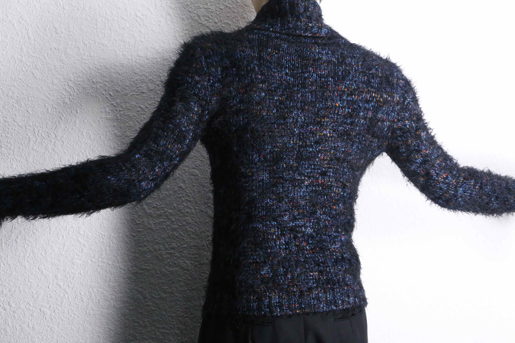 カラフルネップの様な鮮やかな配色に変形的なディテールが素晴らしいニット。