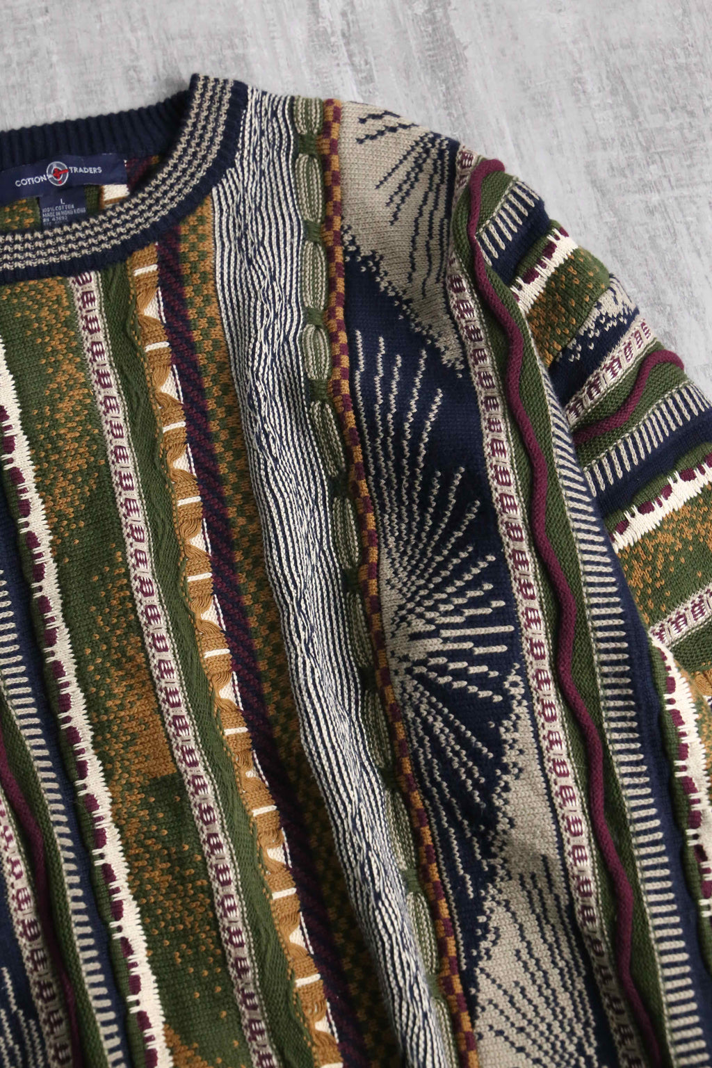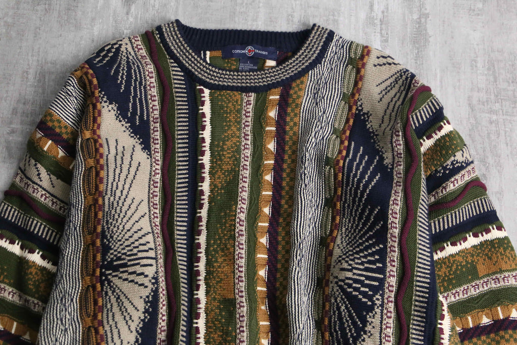 ラグビーウェア等を手掛けるイギリス発祥のブランド"Cotton Traders"。今回はインパクトのある配色の3Dニットをご紹介。