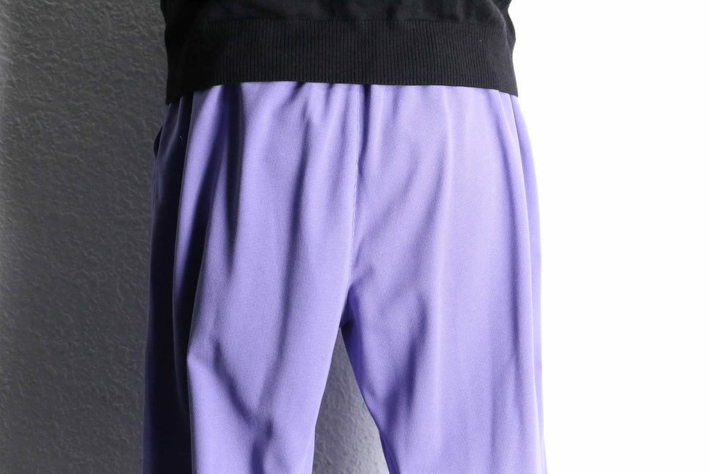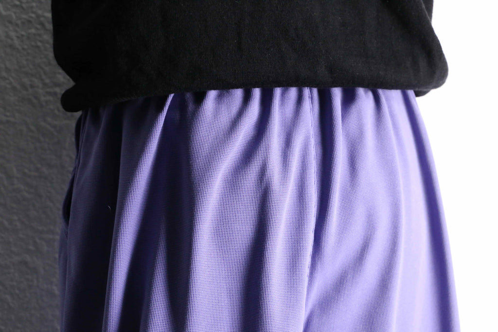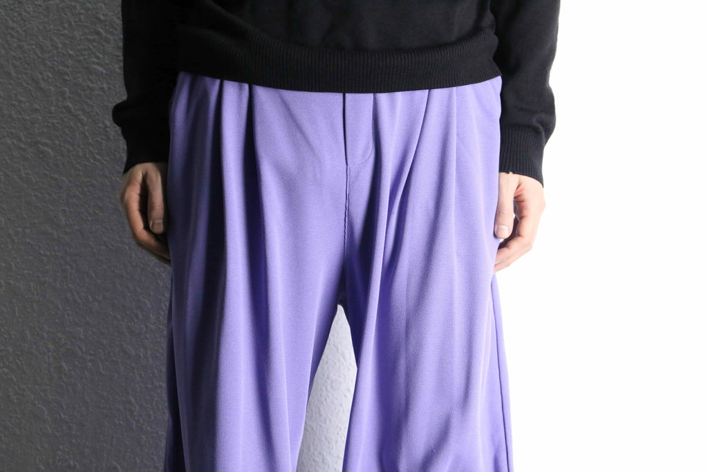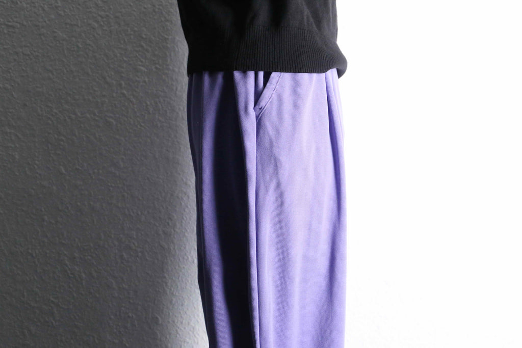 薄いパープルの配色が可愛らしいワイドイージーパンツ。