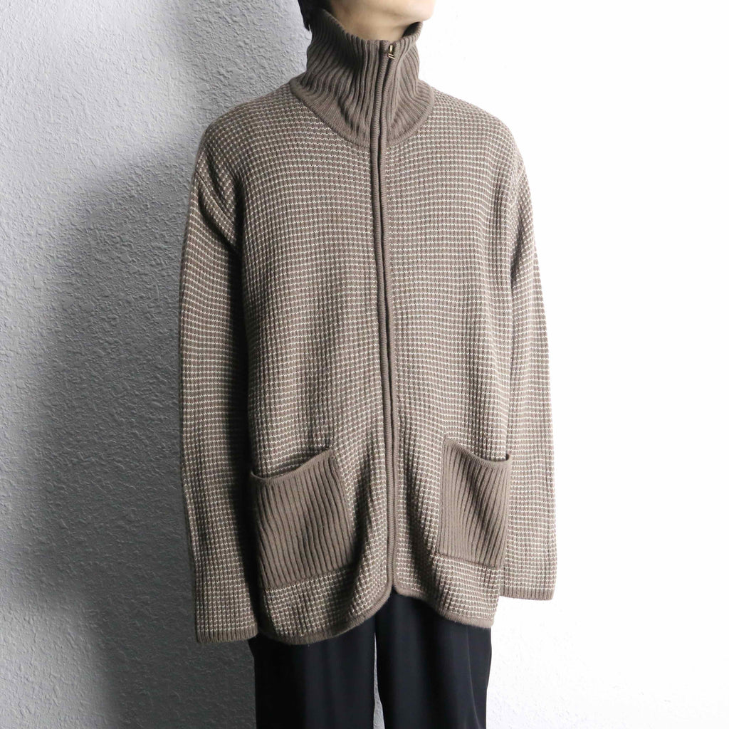 beige high neck zip knit
