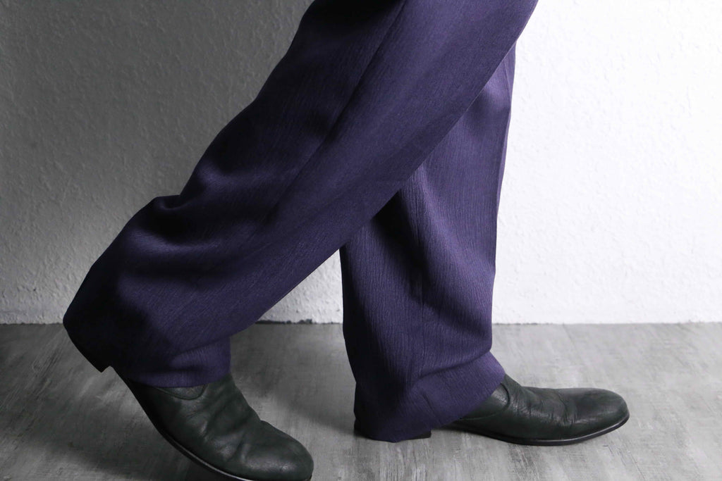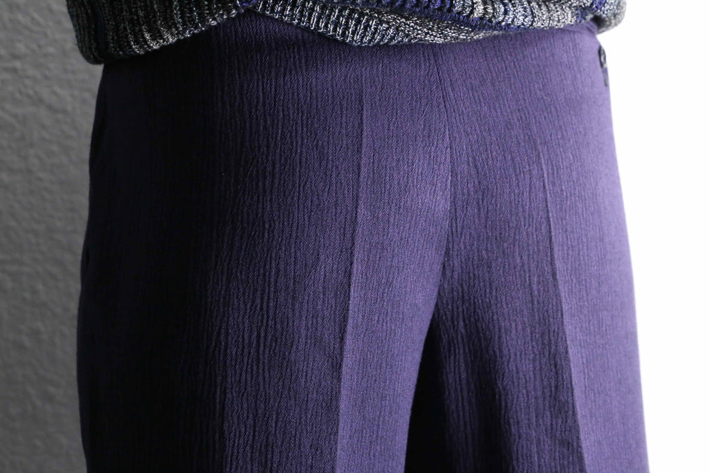 パープル、2タックワイドテーパーシルエットが繰り出すアイテムとしての雰囲気をお楽しみ下さい。
