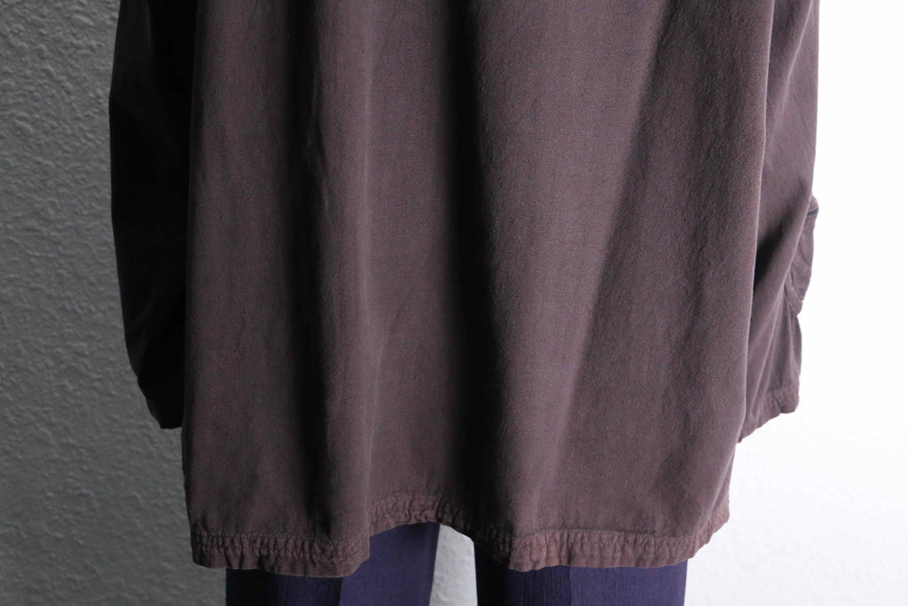 特別厚地という訳でないですが、平織りコットンのしっかりとハリのある質感。着心地はコットンスモッグに近い感じです。