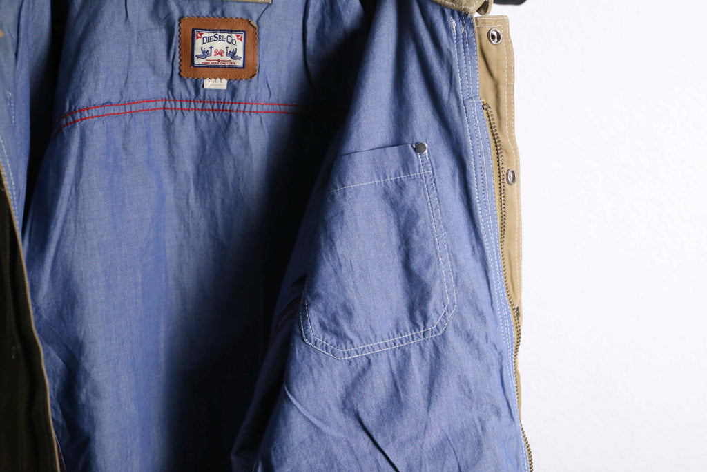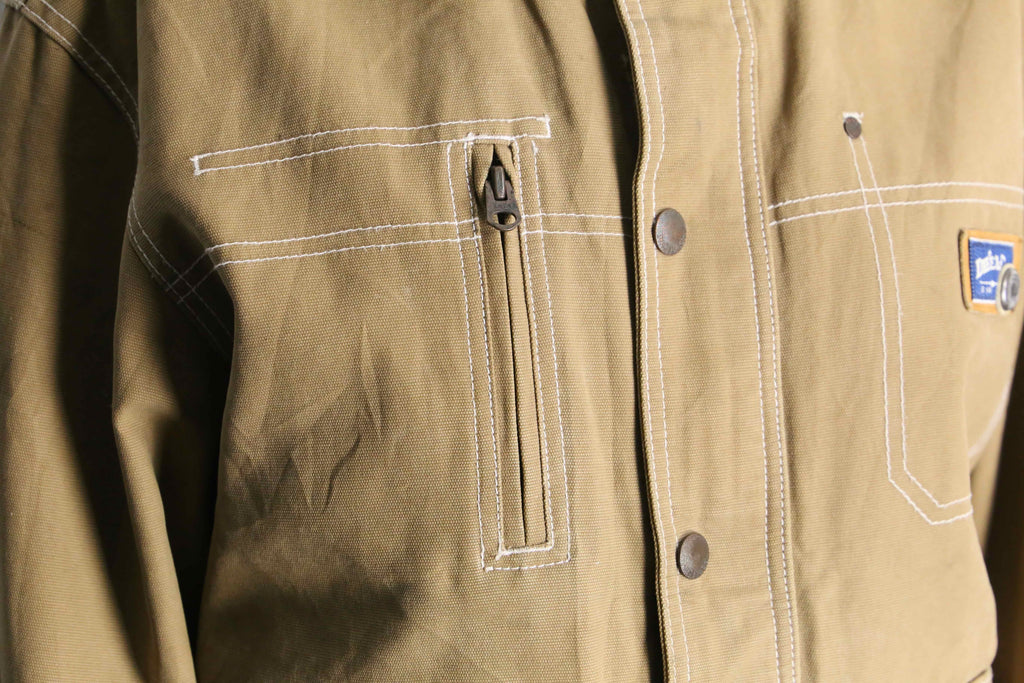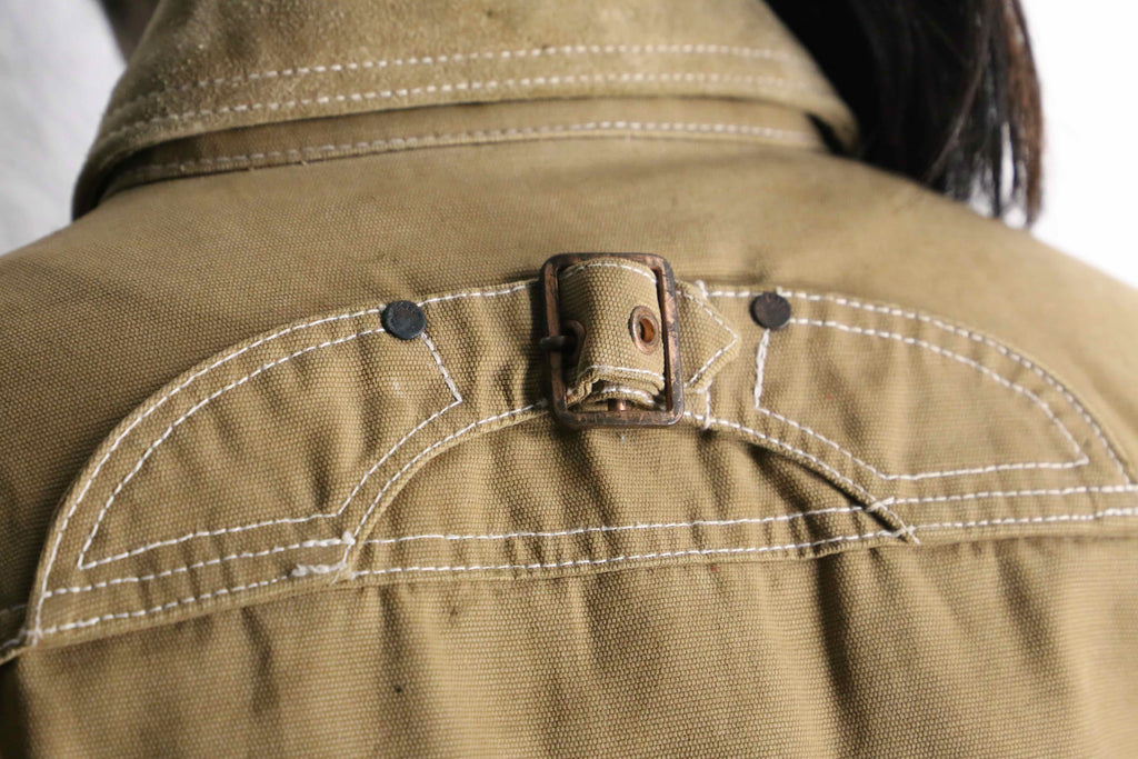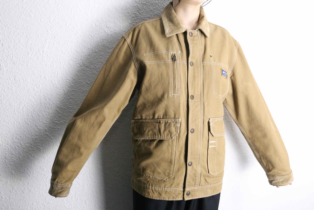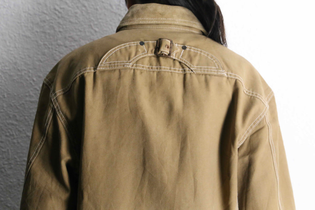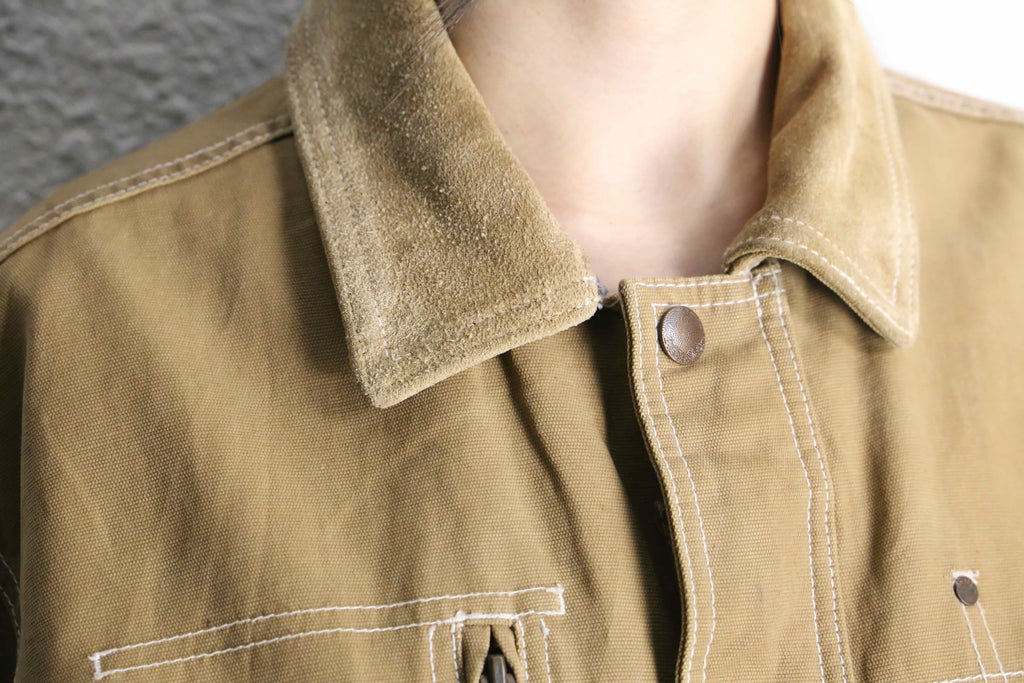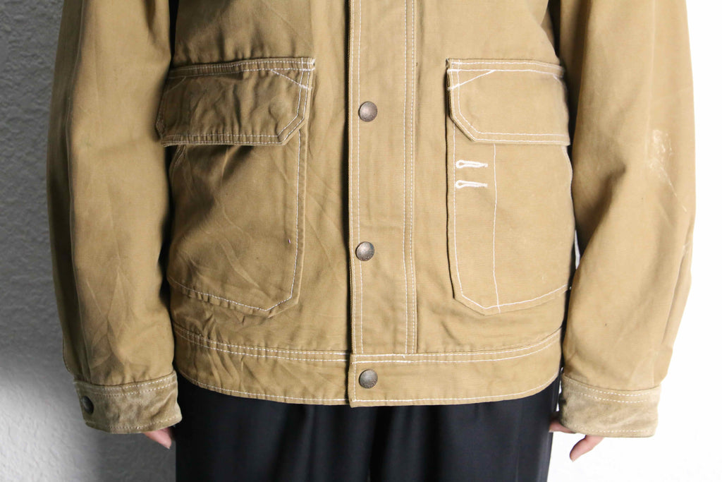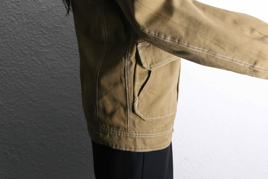 薄いダック地のようなハリのあるコットン生地。ワークジャケットと言って細部のディテールからファッション性が溢れる1着です。