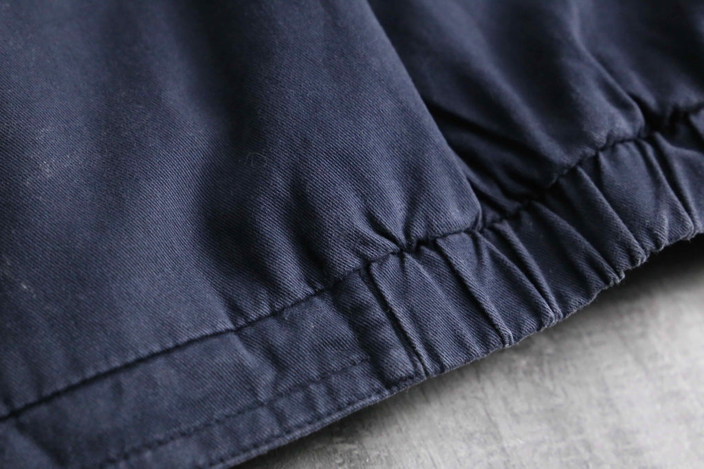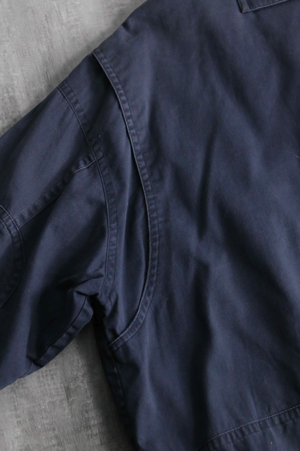 襟の切り替え、太めアームのルーズサイジングは年代特有のいいシルエットを生み出します。