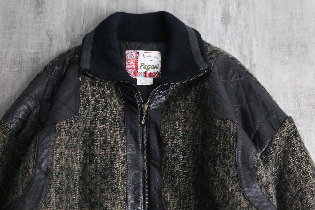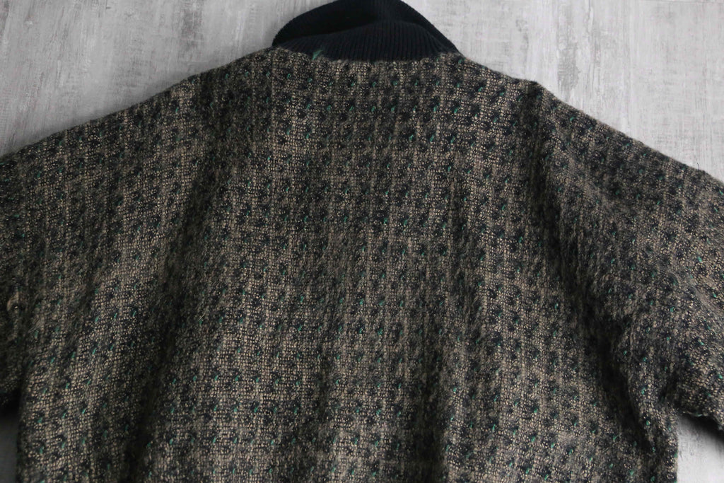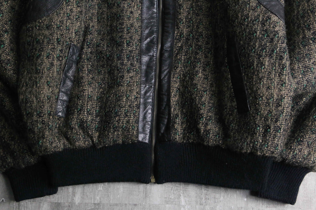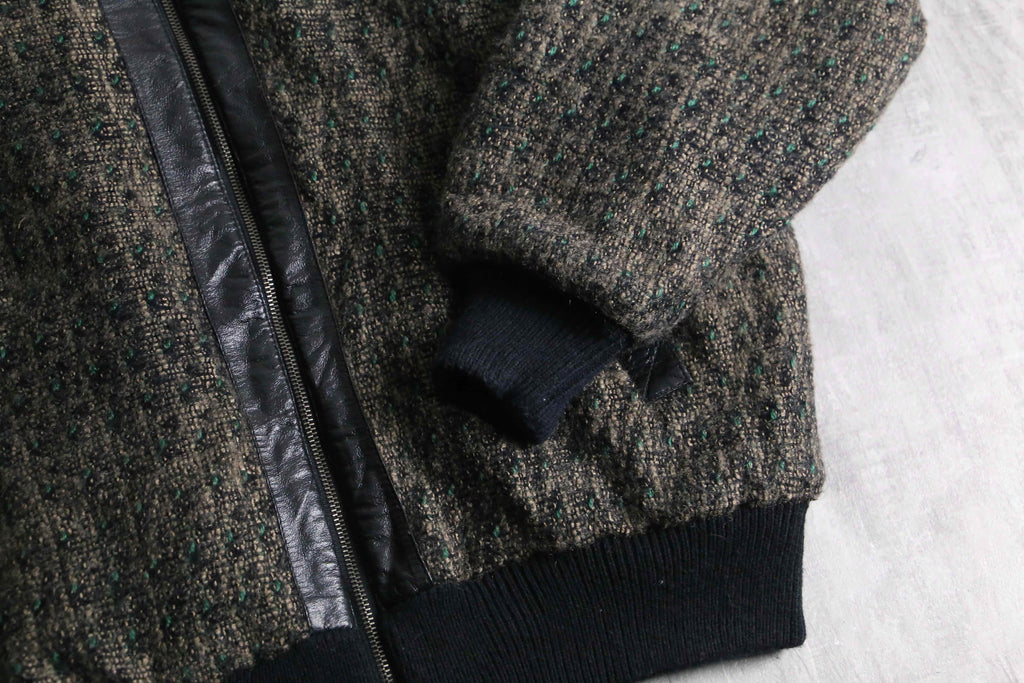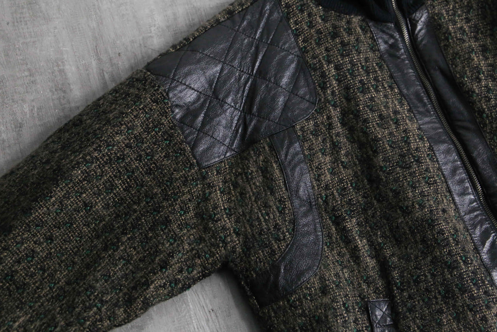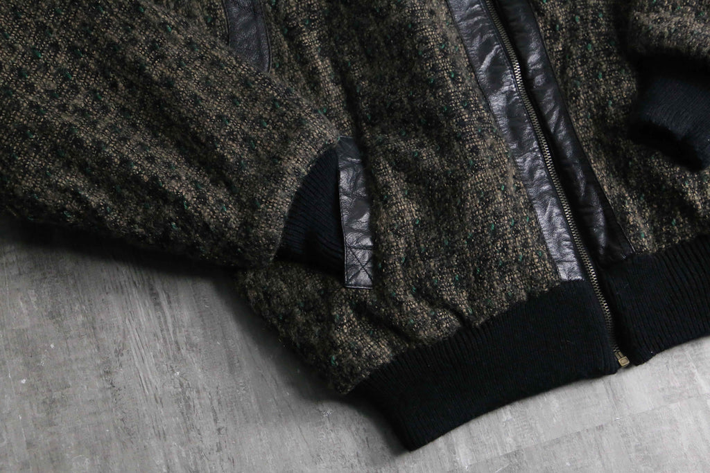 ふわっとした表情のアクリルツイードに、恐らくカウレザーの切り替え。柔らかさの中にほんのり無骨さが混ざる、このバランスが絶妙です。可愛く寄りすぎず、ちゃんと男らしさも残っているのがまた良いところ。