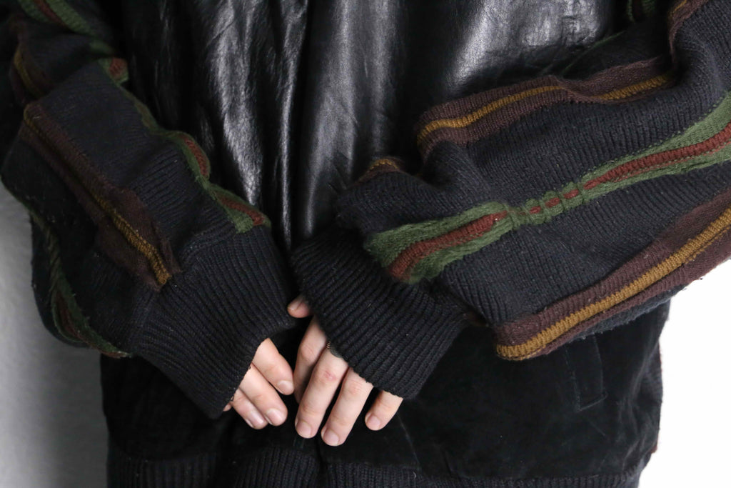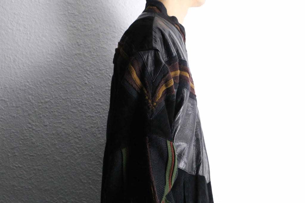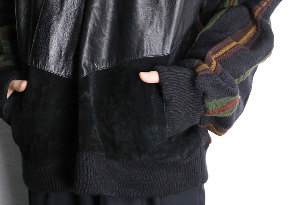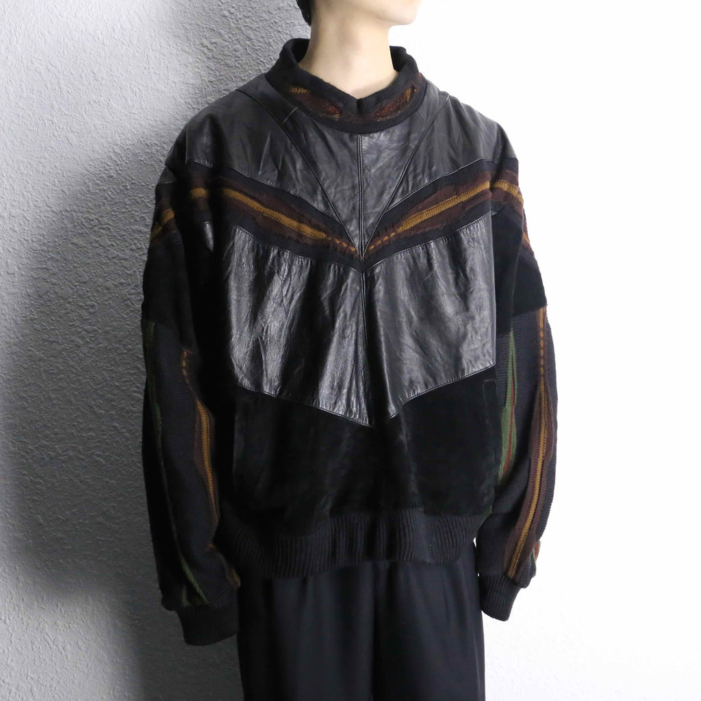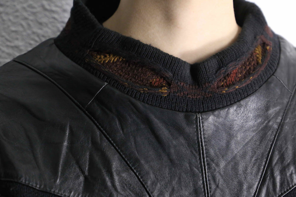 レザーとニットの贅沢な切り替えデザイン。
