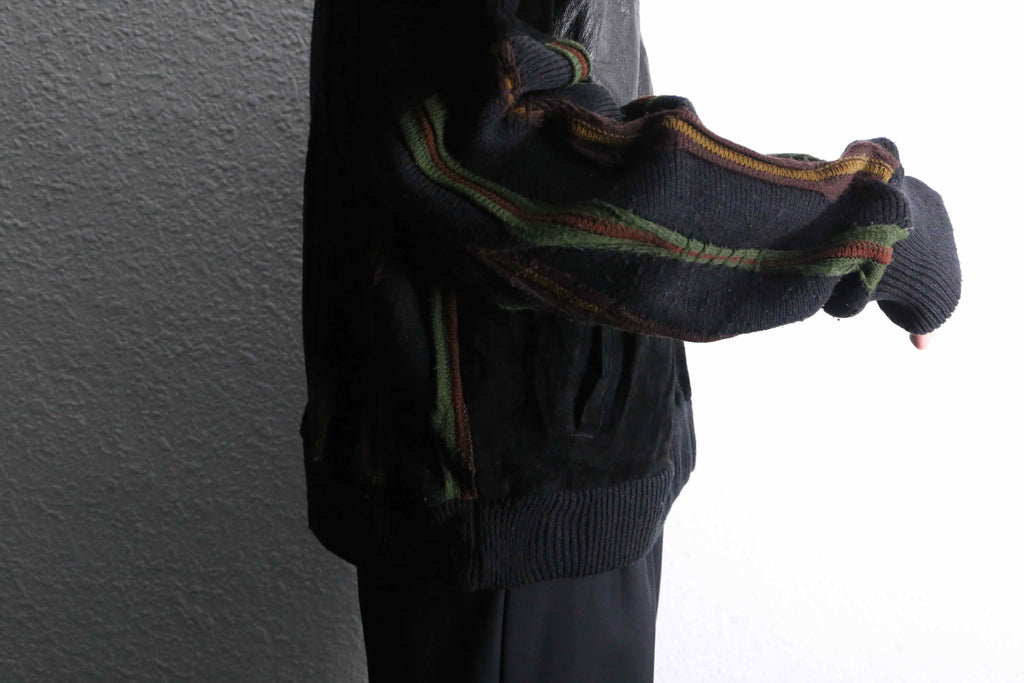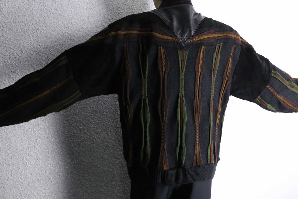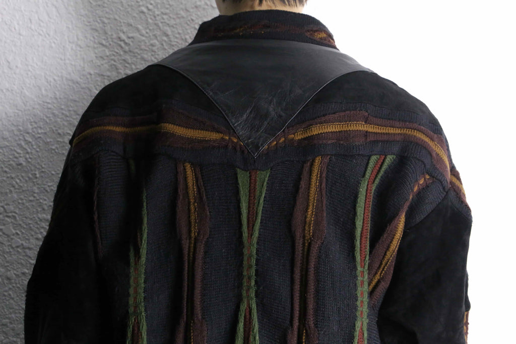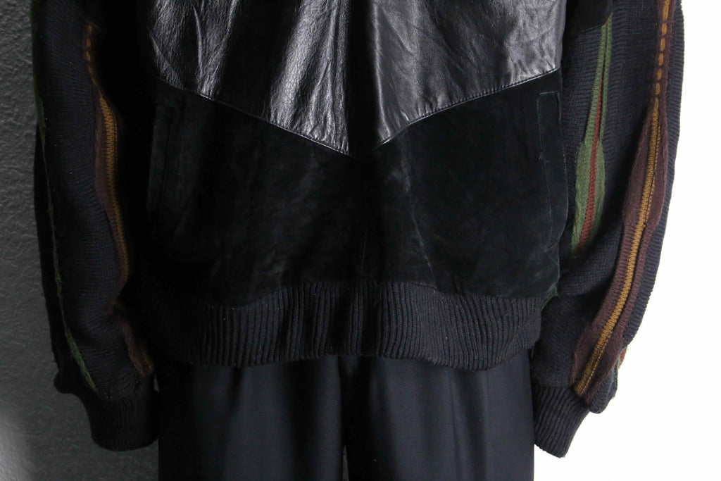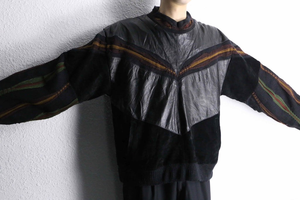レザーとニットの贅沢な切り替えデザイン。