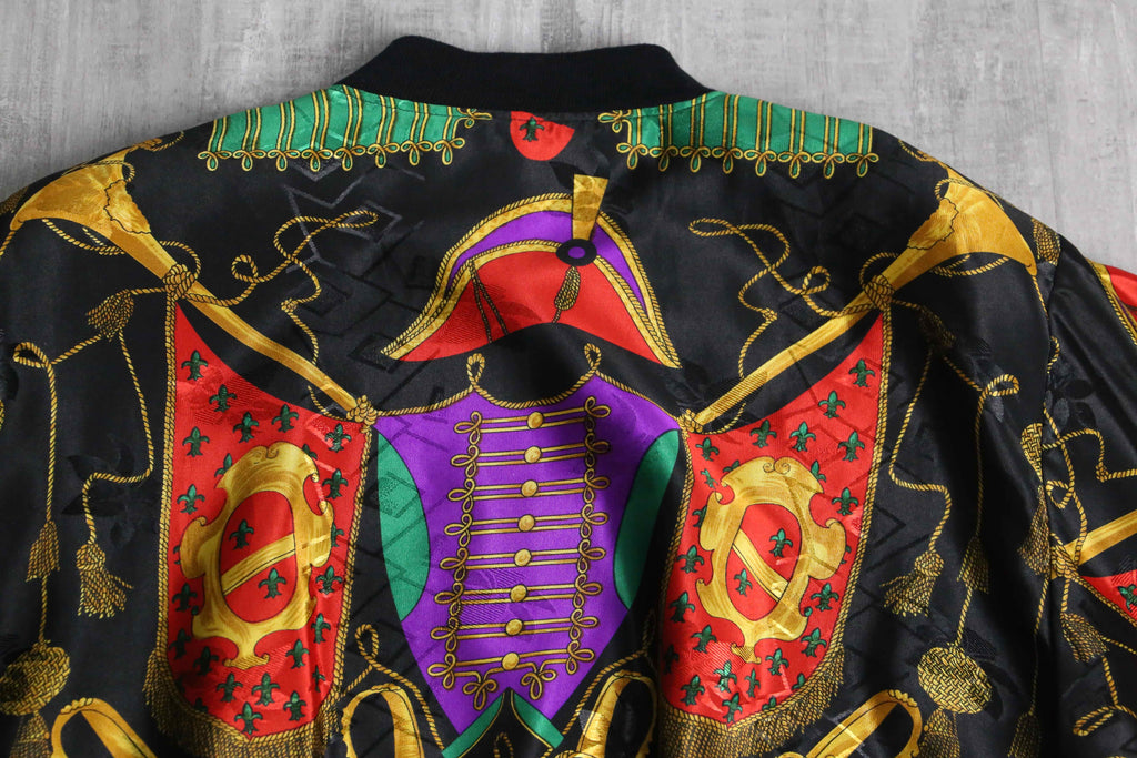 今回は黒基調に、赤や金のゴージャスな配色を採用した柄。高級感は勿論の事、ファッションアイテムとしてのインパクトと存在感は抜群です。
