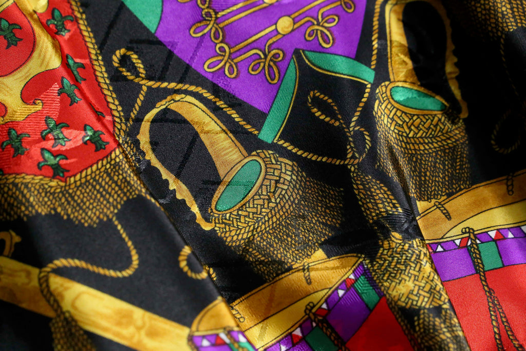 エルメス等のラグジュアリブランドが昔から展開し、スカーフ等に多く採用されてきた様々なモチーフの総柄。古着ジャンルでも10年以上前から人気を維持するジャンルのアイテムです。