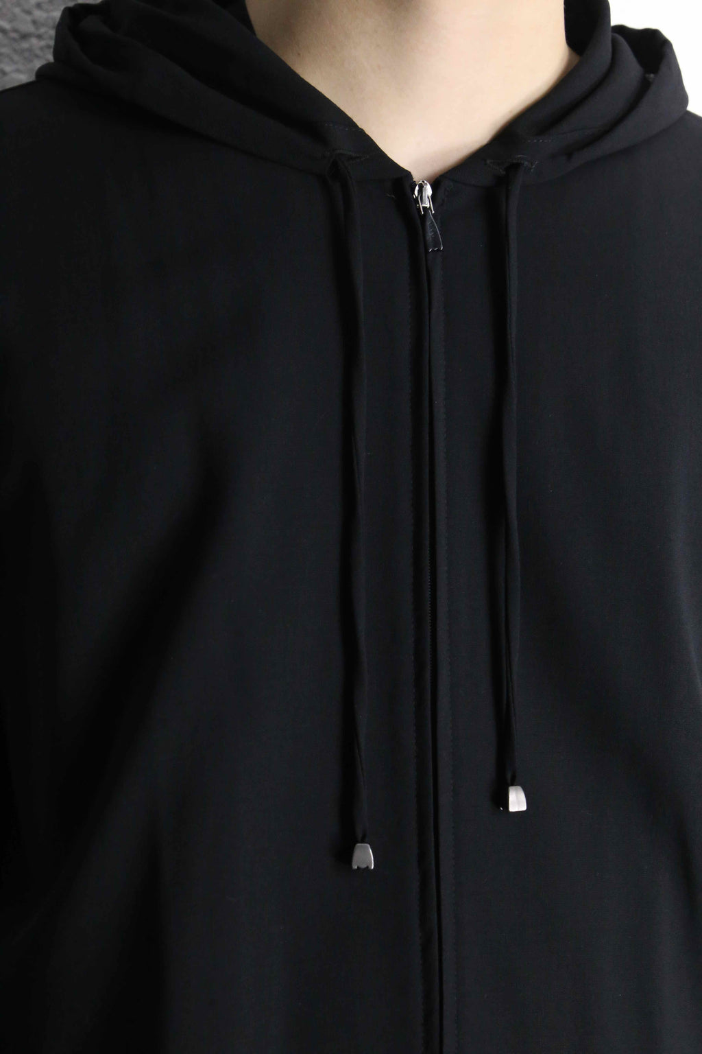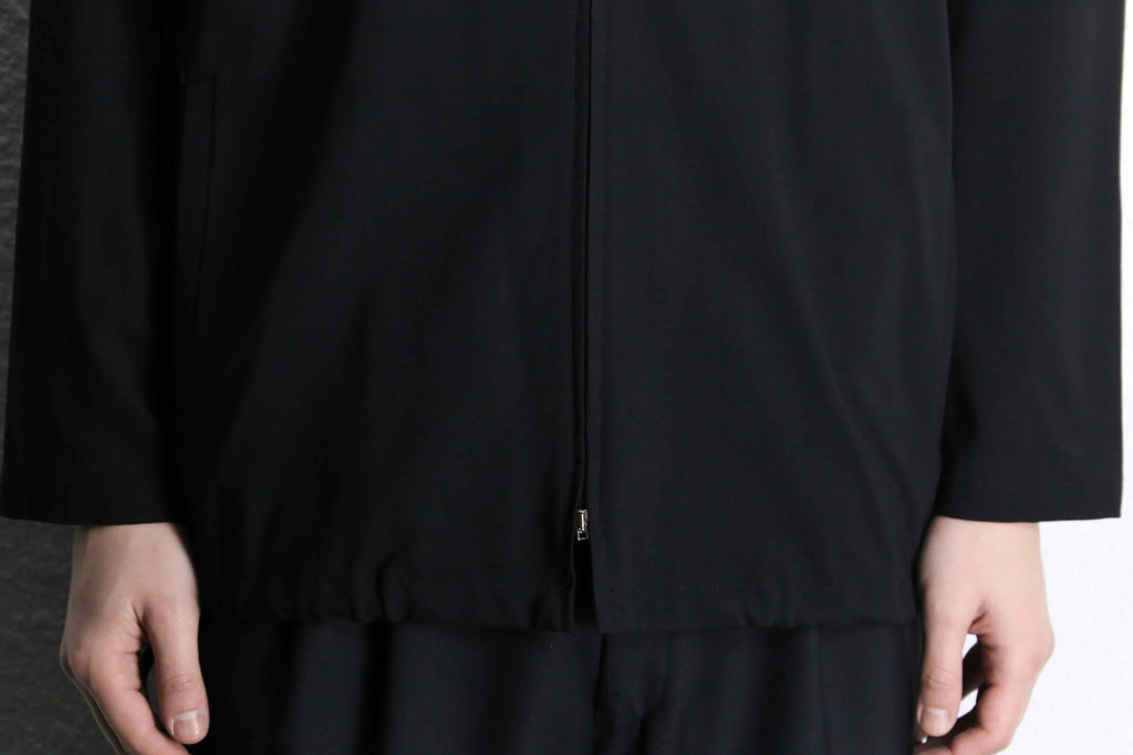 ミニマルなデザインのジップアップトップス。
