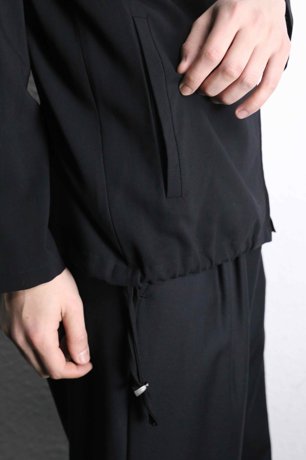 肩幅は広め、袖丈はややコンパクトな設計。縦のラインが出やすく、すっきりとしたシルエットで着用いただけます。