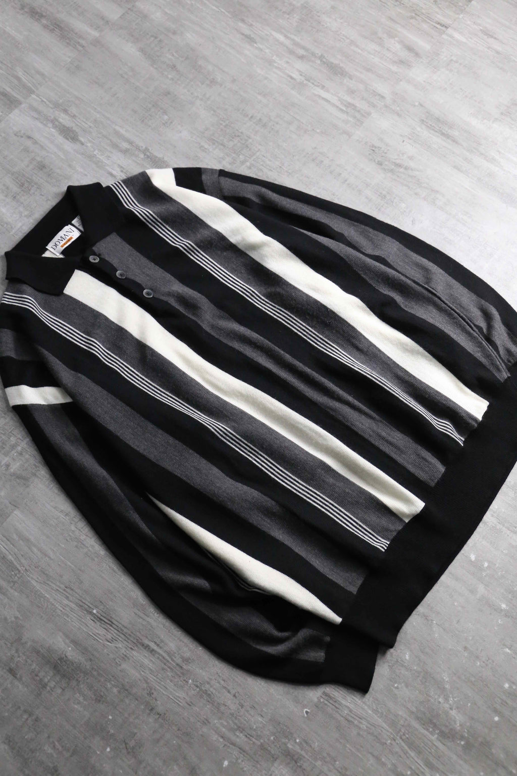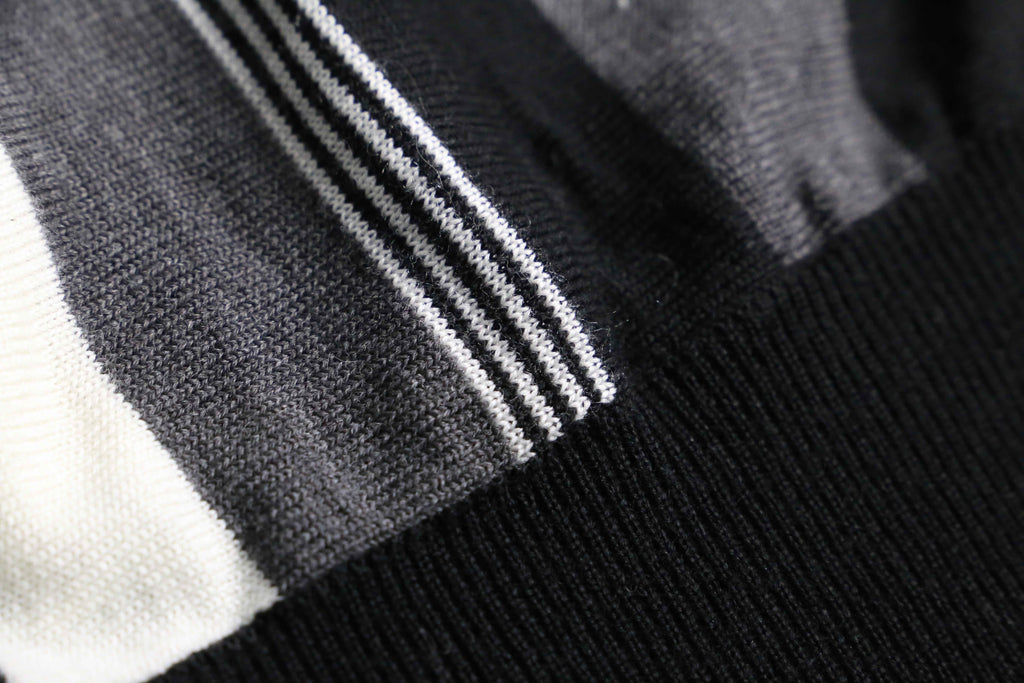 白、黒、グレーのモノトーン配色の色味良いニットポロ。