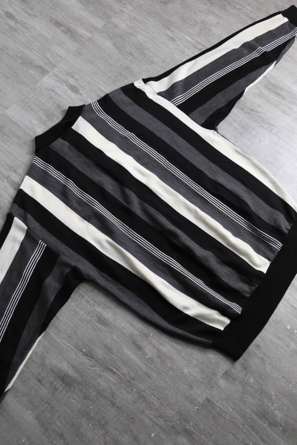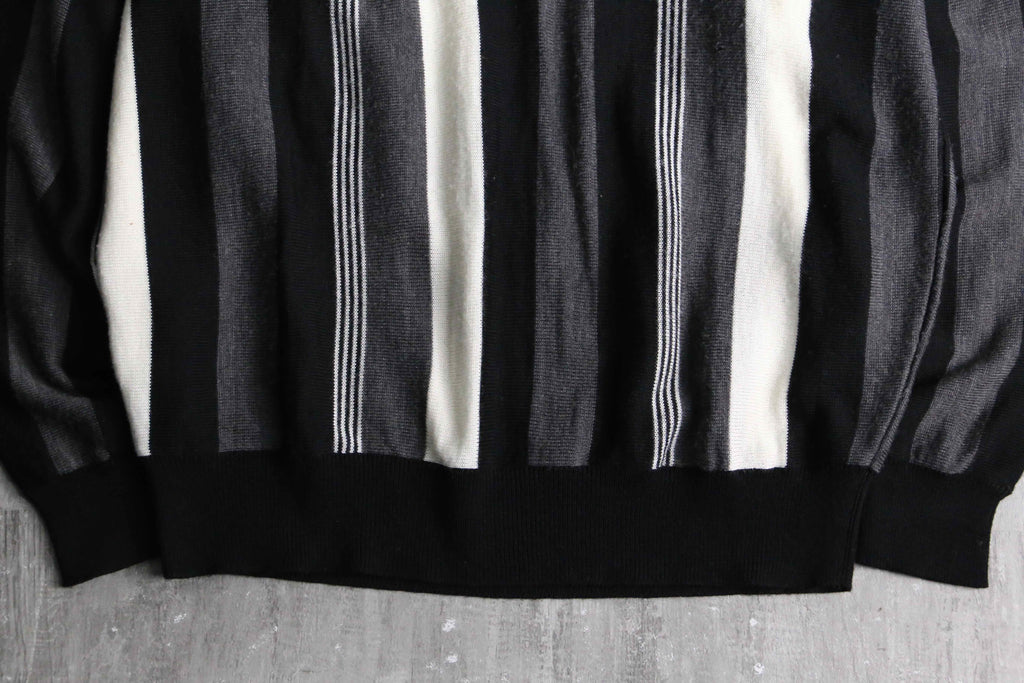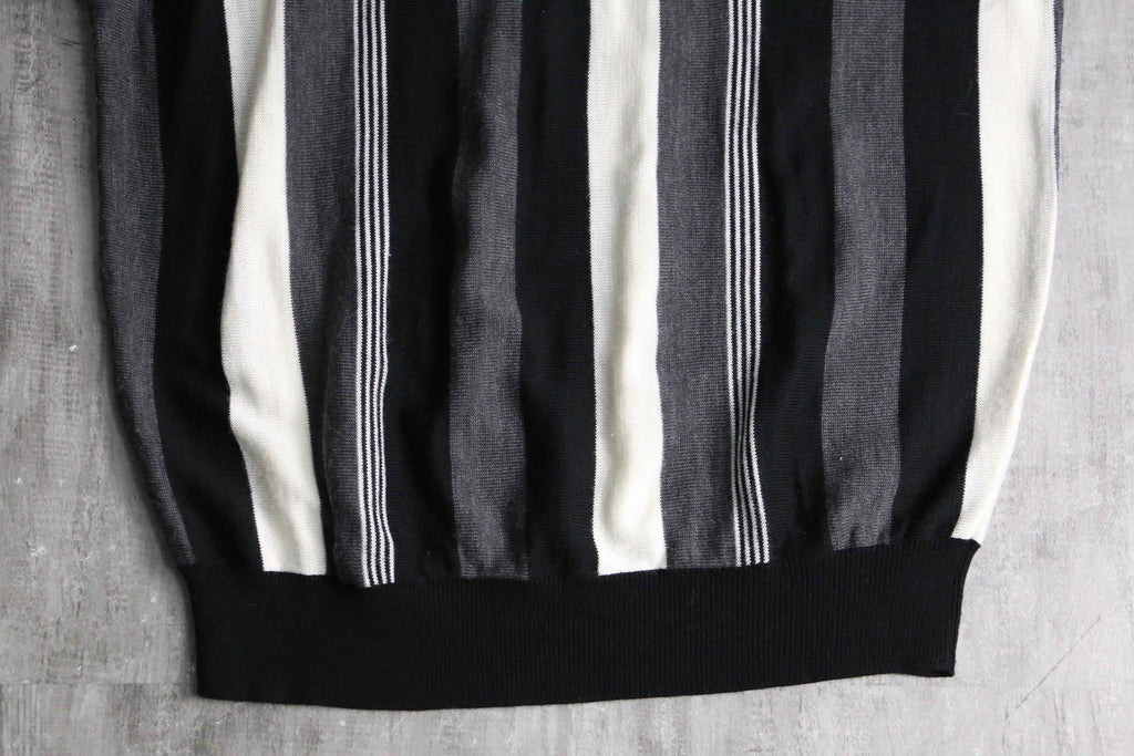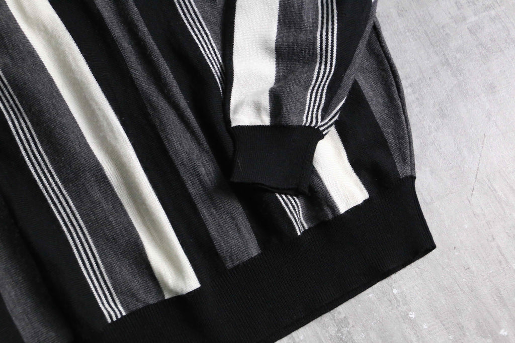 今回はモノトーンストライプという事もあり、比較的使い易くも、デザイン性にも長けた個体。春先のメイントップスからインナーまで様々お楽しみください。