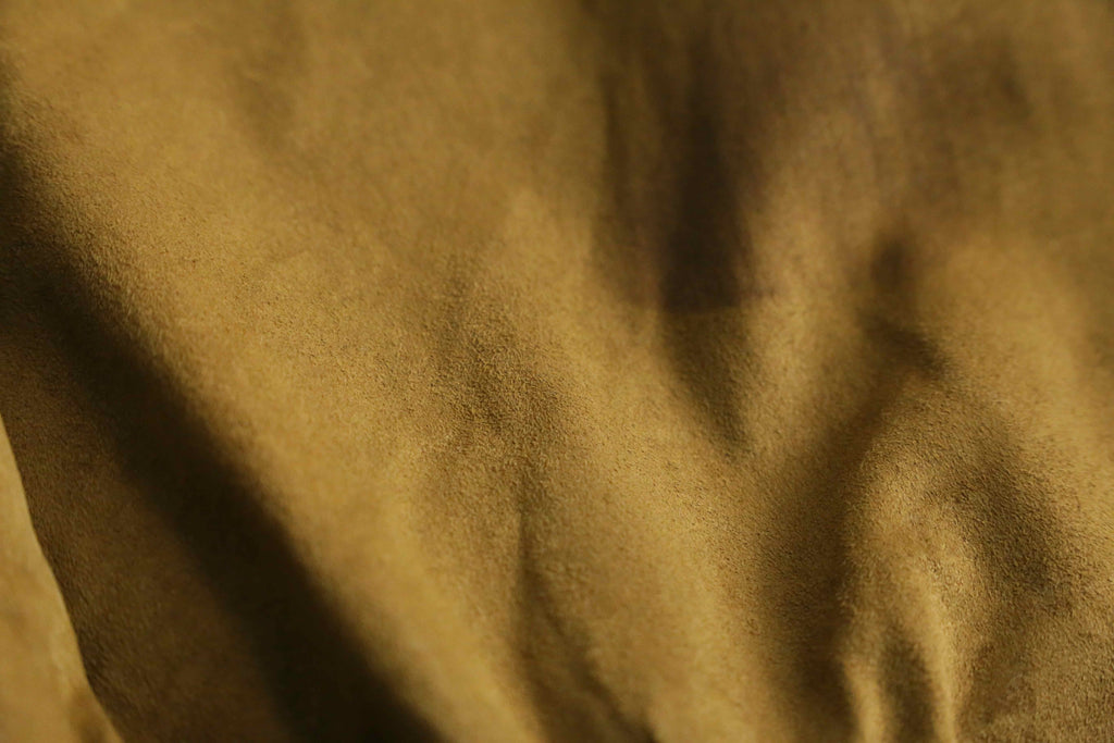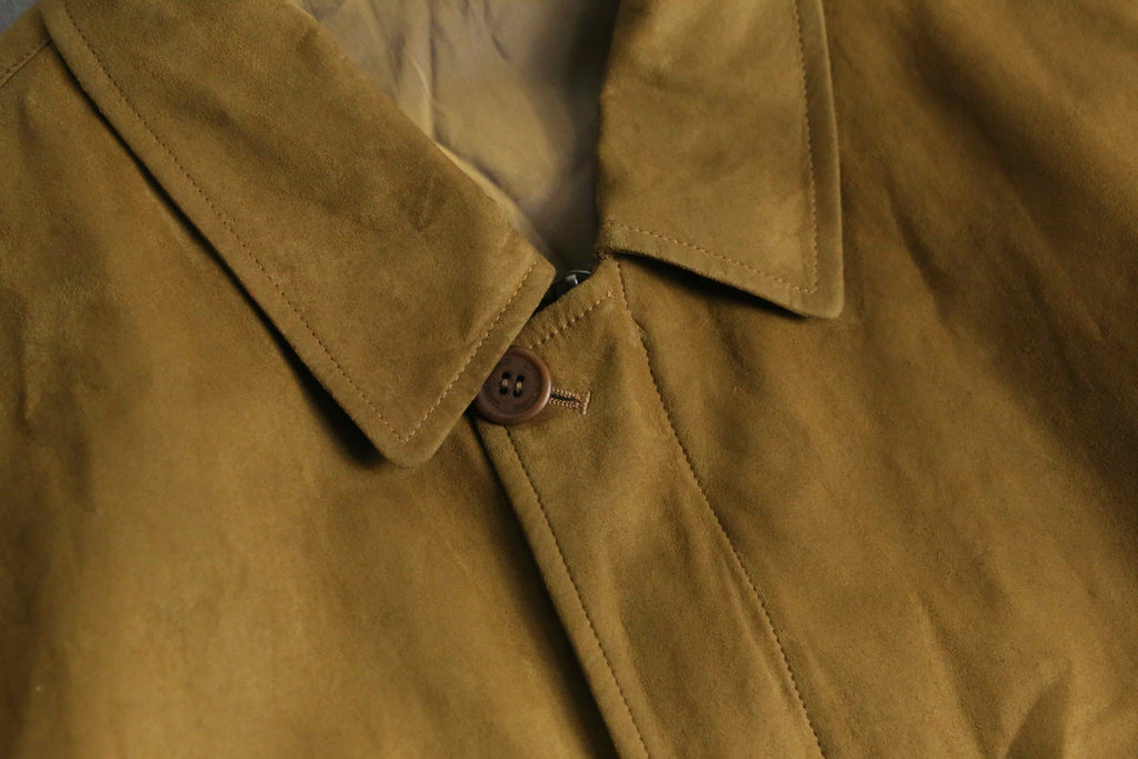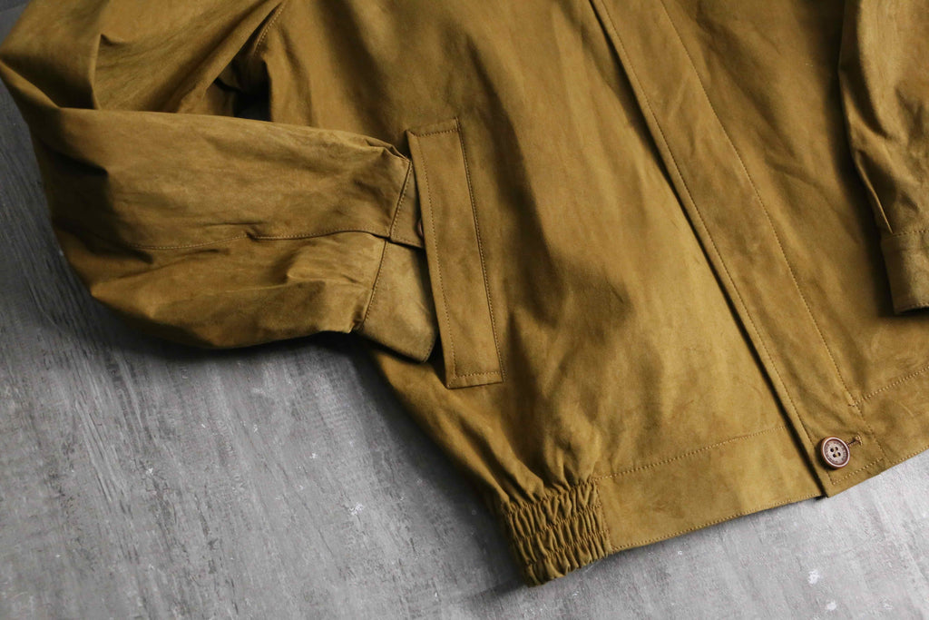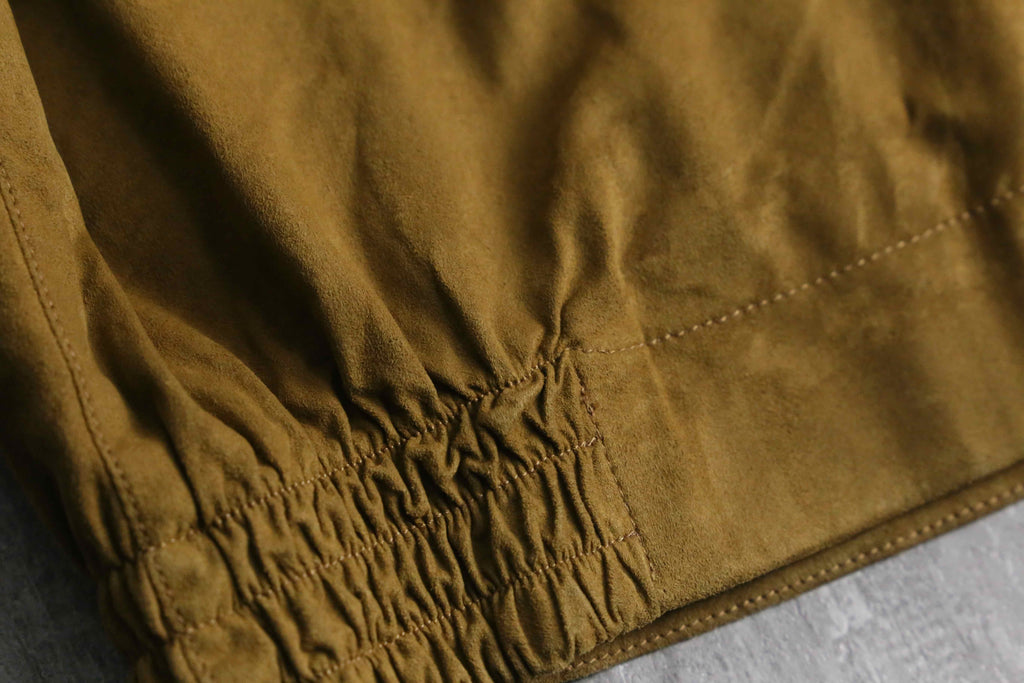 かなり薄手ながらも、程よいハリと滑らかのあるスエード生地。スエードとは言えかなり軽量でライトジャケットとしての汎用性の高さは文句ありません。春先の相棒として是非。