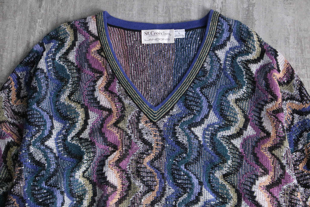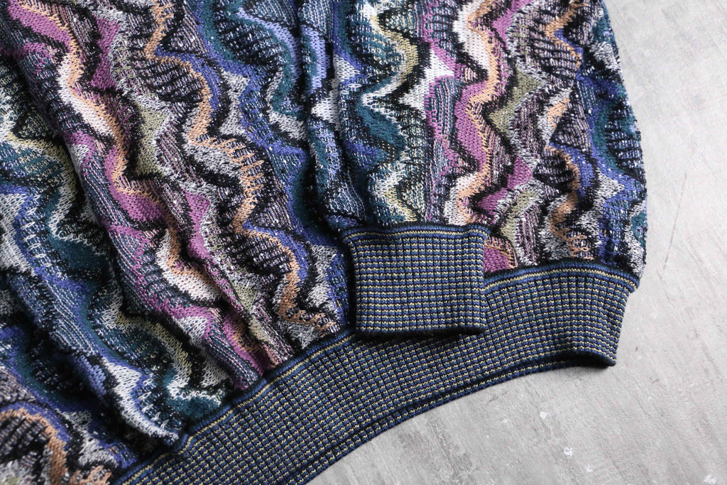 まるでイタリアの最高峰、ミッソーニを思わせる美しいパターンのニット。
