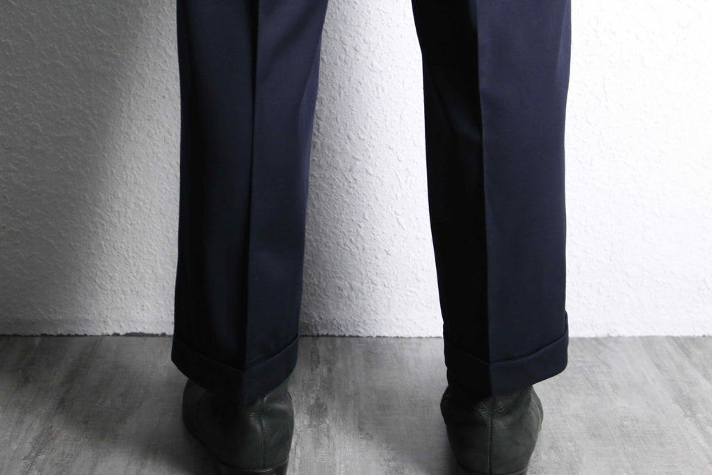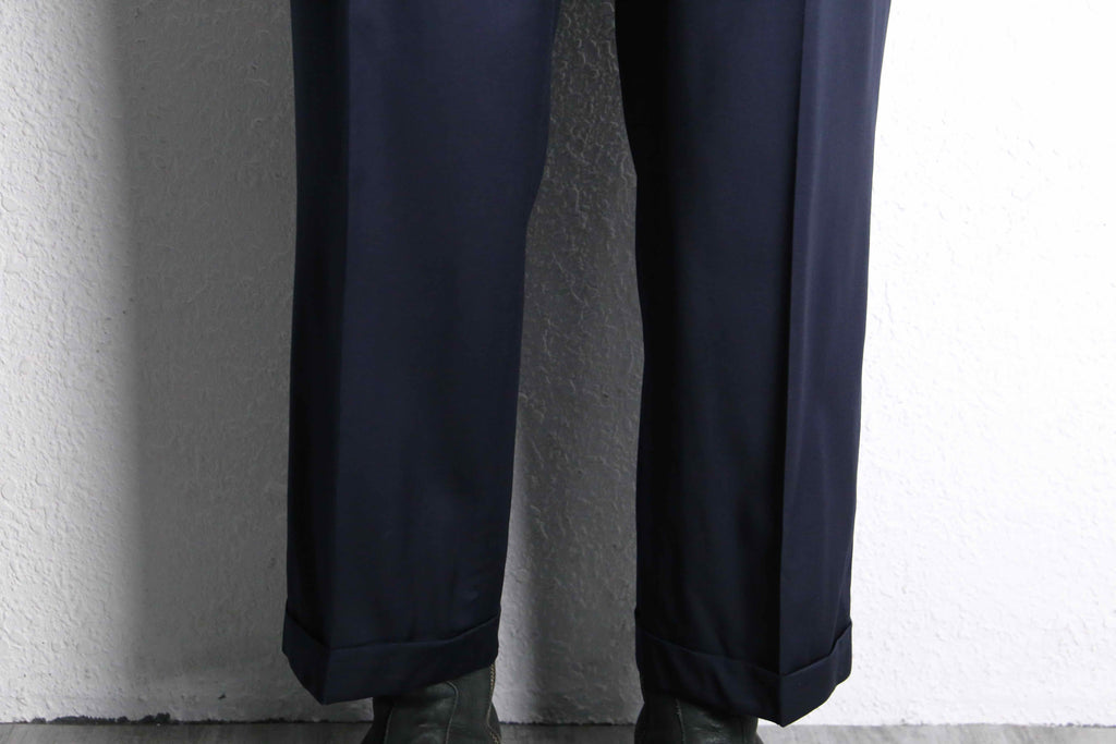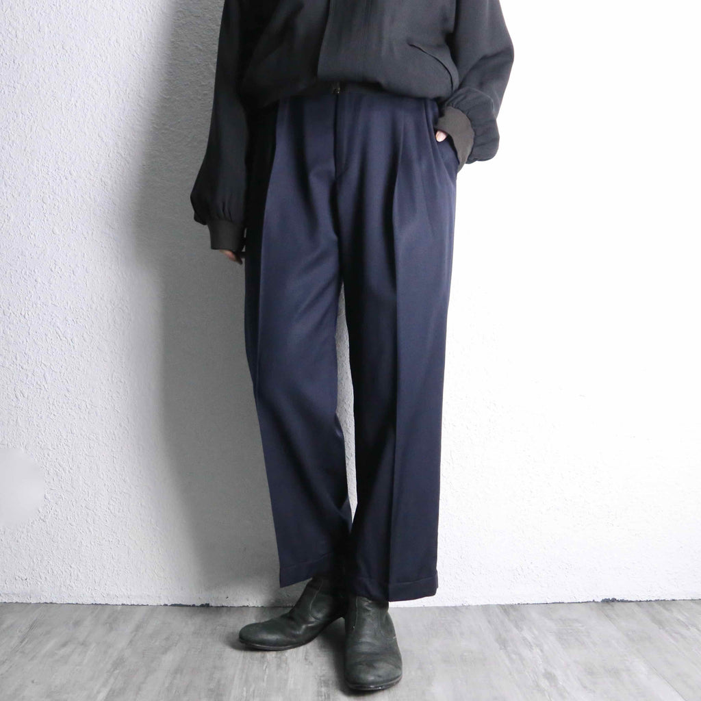 “Zanella” gloss navy 2tuck tapered slacks