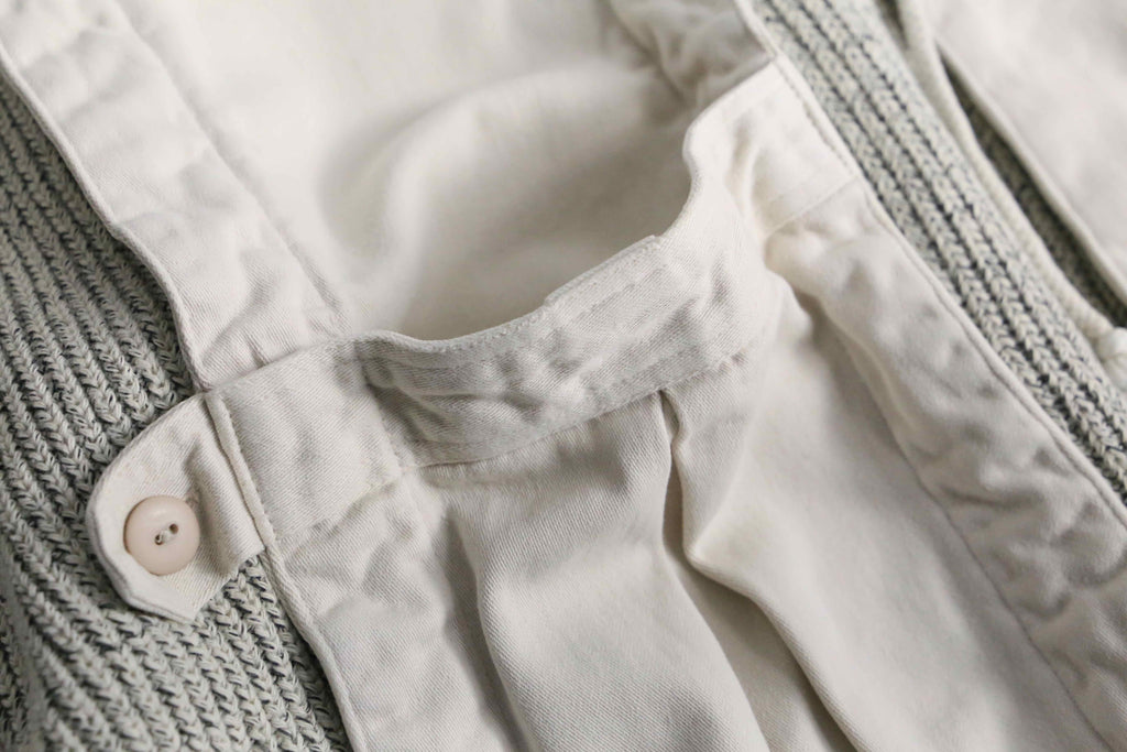見た目に反して着心地は比較的イージーで、ジャケット程の重みはありません。スウェットやフーディーを着るのと同等の感覚でお楽しみいただけたらと思います。
