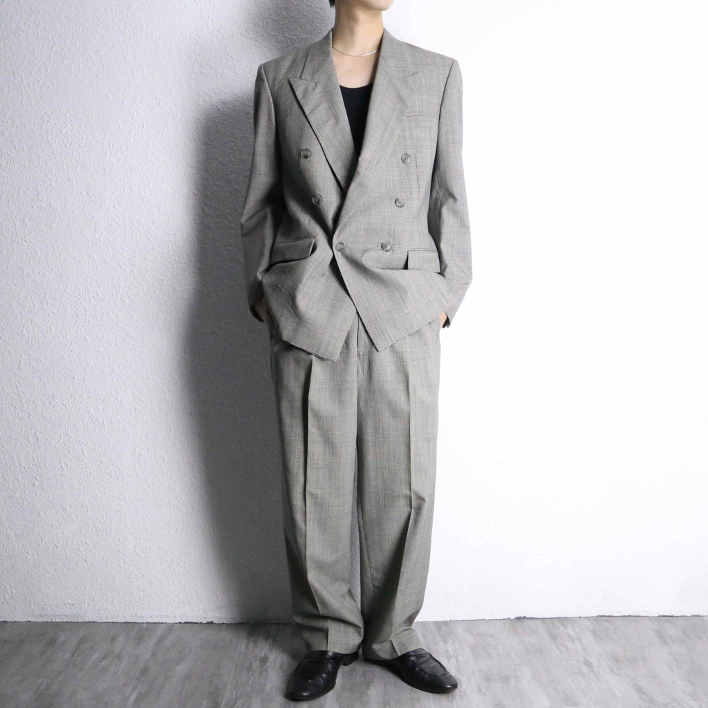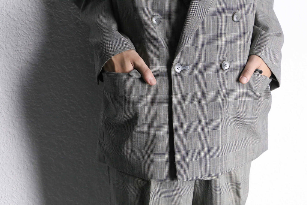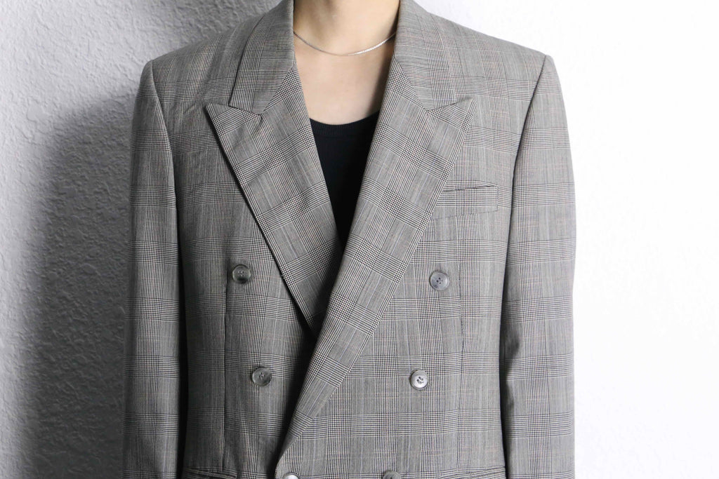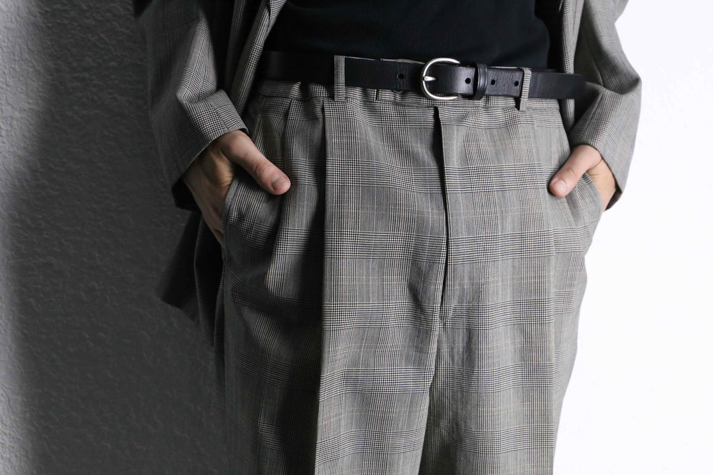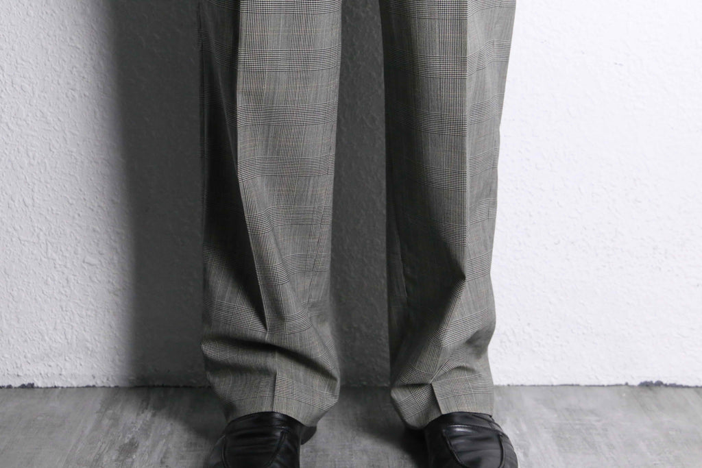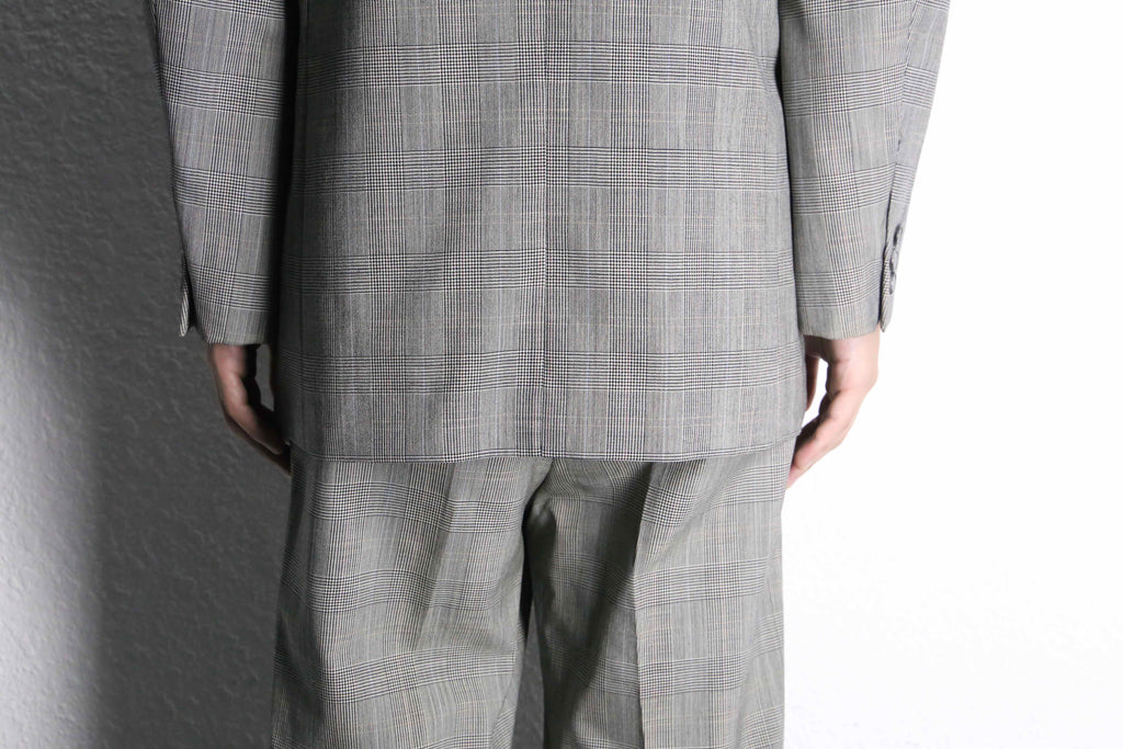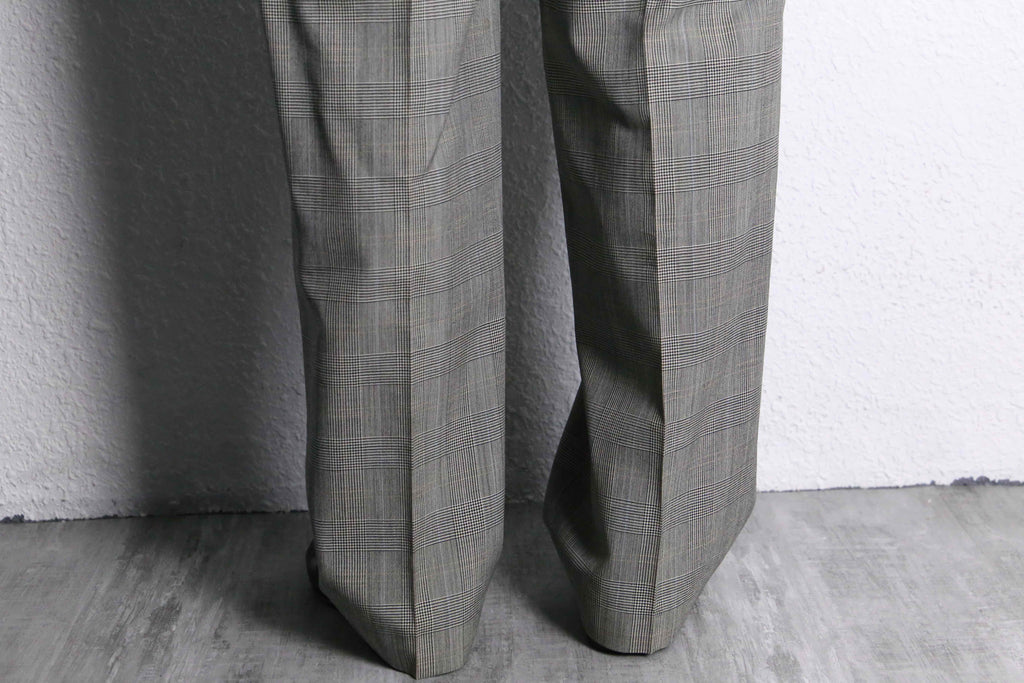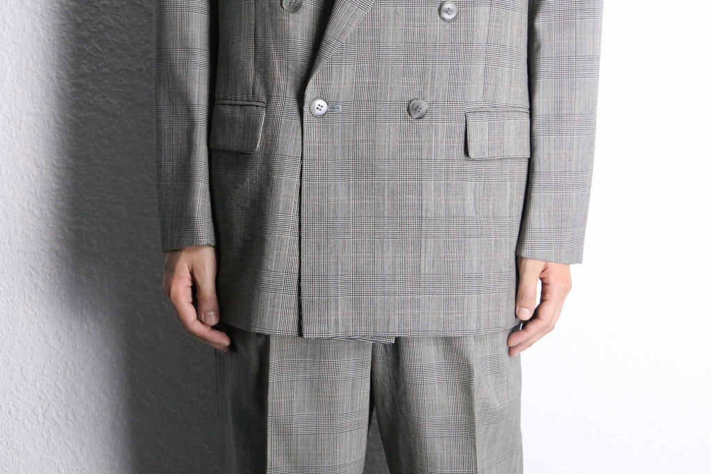 スラックスも2タックから緩やかなテーパードでダブルに見合うシルエット。